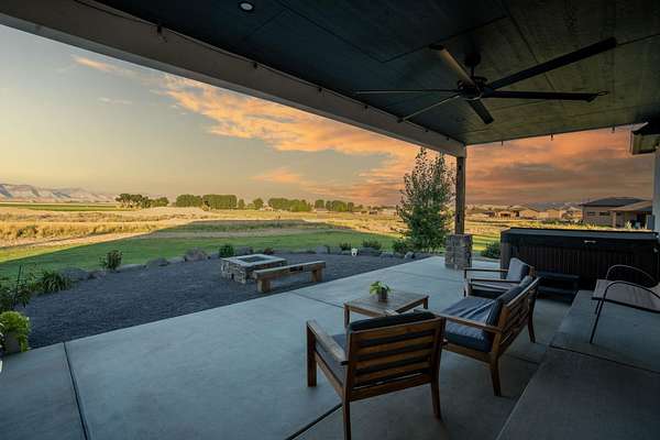 Enjoy the views and privacy offered on this 2.47 acre lot with all of the creature comforts of a gorgeous new build (2021) landscaped for your gardening enjoyment. Brand New A/C has been installed February 2026! This black and white beauty boasts premiere finishes, including stunning quartz countertops, luxurious in-floor radiant heat, Bosch appliances, a classy butler's pantry, and a show-stopping gas fireplace. The open concept, split floor plan offers a shared 'Jack & Jill' bathroom, and a primary suite to knock your socks off. The primary bedroom has incredible views of the Colorado mountains, and the 5-piece owner's suite bathroom includes a beautiful Euro glass shower door to show off exquisite tile work, double vanity and a pedestal tub for relaxing after a long day. Views are spectacular, especially at sunset. While most of the living space is the main level, the upstairs bonus room offers an excellent flex space which could be used as a bedroom with the simple addition of a door and closet rod, or use it for a home office, playroom or gym! The upstairs 3/4 bathroom makes it convenient for guests or homeowners using the space for any purpose. Perhaps the most incredible aspect of the property lies just beyond the soaring back windows: a private, covered patio area allows homeowners to enjoy outdoor living at its finest from their hot tub gas fire pit seating area. The property has been meticulously landscaped and maintained by the current owners, and new owners could continue to enjoy the low maintenance, mini orchard fruit trees and grapevines. Raised garden beds and waves of green grass grace the nearly 2 1/2-acre lot in the country. Bring in your fresh produce to prepare a wonderful home-cooked meal in the functional chef's kitchen complete with a stunning butler's pantry. Call for a private showing to see how you can call it "HOME!"