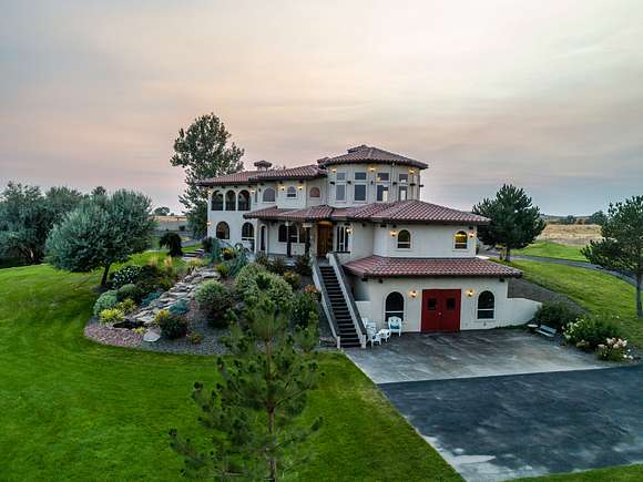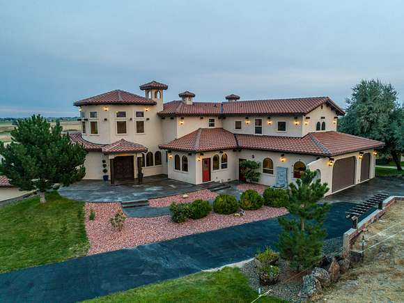 Step into luxury with this magnificent Spanish-style estate located in Caldwell, Idaho. Enjoy the manicured lawns and exceptional landscaping, a freshwater pond with waterfall, and 360-degree panoramic views.