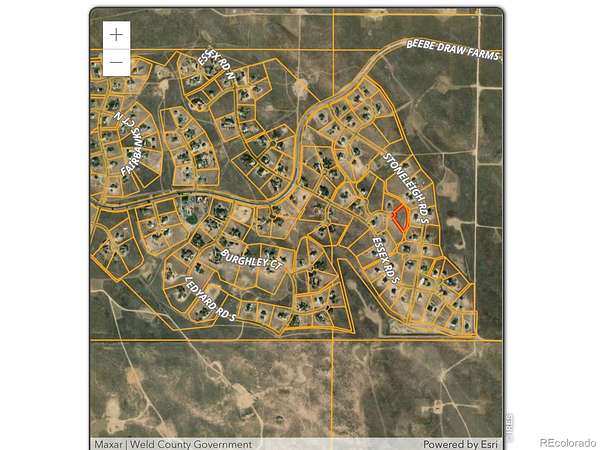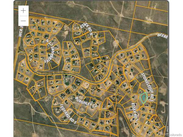 Highway 85 to CR 32. Drive 7 miles east on CR 32. Turn North on CR 39 2 miles to BeeBe Draw Parkway. Go 1 mile to Essex Rd S. Turn right , go 1/4 mile to 2nd cul-de-sac on left. Turn left, lot is at end of cul-de-sac.