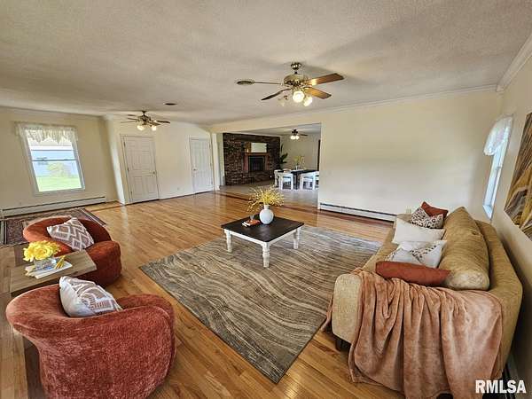 Spacious Ranch Home with 3 Buildings on 3.49 Acres - Country Living at Its Best! Enjoy peaceful country living with this beautifully maintained ranch home situated on 3.49 acres. This property offers a 3-car garage, three versatile outbuildings, and plenty of space for gardens, animals, and outdoor activities. The home features a spacious family room with wood flooring and a second living area complete with a fireplace insert and ceramic tile flooring. The kitchen showcases custom oak cabinetry and comes fully equipped with appliances, while the formal dining area includes a coffee bar and walk-in closet-a flexible space that could easily serve as a fourth bedroom if desired. There are three cozy bedrooms with hardwood flooring, and two full bathrooms, including one with a large walk-in ceramic tile shower. Step outside to enjoy the large, covered deck, ideal for relaxing or entertaining. Outbuildings include: A 36x48 pole building, perfect for storing large equipment, A 30x42 pole building, great for a workshop or hobby space, A third utility building for extra storage. This property offers the perfect blend of comfort, functionality, and outdoor charm-just waiting for you to make it your own!