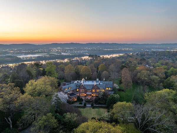 Designed by renowned architectural firm, Smith and Pringle out of Atlanta, known for their arched windows and doors, classical detail, raised first stories, and symmetry, this custom home on 6.5 +/- acres presents a once-in-a-lifetime opportunity to own one of Tennessee's finest residences in the premier Riverview neighborhood. Built in 1927, this luxury estate with its southern classic design offers a 6 bedroom, 7 full and 2 half bath main house, a 1 bedroom, 1 bath guest house, a carriage house with a 4-bay garage and upper-level apartment, a heated Gunite pool with fountain, and high-end architecturally designed landscaping. Enjoy coveted privacy with views of Lookout Mountain, as well as stunning sunrises in the front and sunsets in back. Perfectly suited for gathering and entertaining, the home boasts expansive outdoor living spaces, and both formal and informal living spaces overlooking the lush grounds. With attention to detail and amazing craftsmanship rarely seen today, this truly impressive home offers a glimpse into the remarkable design and finishes of a bygone era, seamlessly blended with modern amenities desired by today's buyers. This premier property offers the discerning purchaser the chance to become a part of Chattanooga's remarkable architectural history. Located just minutes from the Chattanooga Golf and Country Club, and close to schools, parks, hospitals, and downtown Chattanooga, please call form more information about this remarkable property and to schedule a private showing. Information is deemed reliable but not guaranteed. Buyer to verify any and all information they deem important.