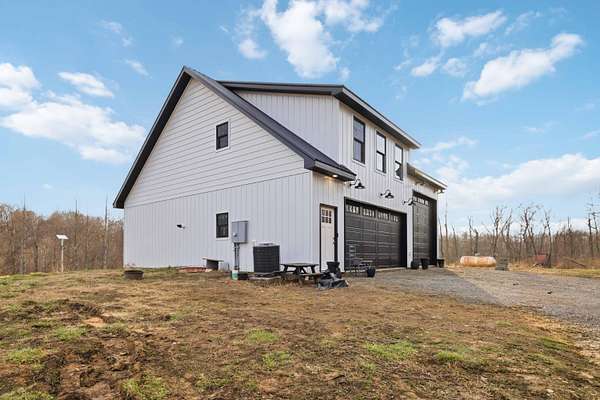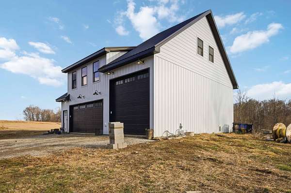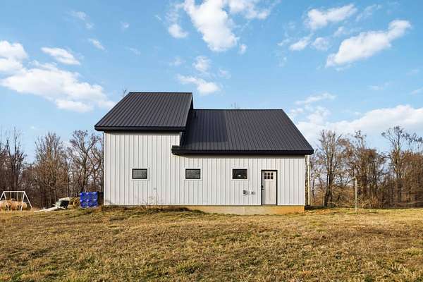 WELCOME to your private Country Retreat!!! This barndominium-style home, built in 2023, sits at the end of the road on 18 acres, offering privacy & privacy with endless possibilities. Inside features 2 bedrooms, 1 spacious bath, laundry room, eat=in kitchen & entertaining area for everyday living. The poperty also includes a large garage space that could easily converted into additional living area, workshop or hobby area to suit your needs. Outdoors, a small orchard has already been started behind the home, with plenty of room remaining for gardening, recreation or pasture land. Whether you're looking for a homestead, hobby farm or quiet escape, this property offers modern comfort surrounded by wide-open spaces & natural beauty.