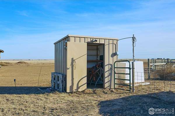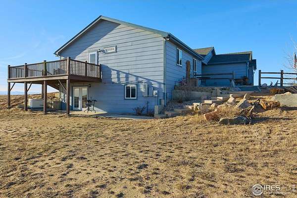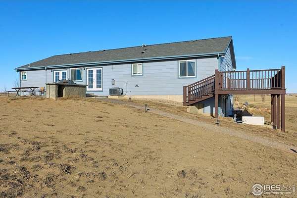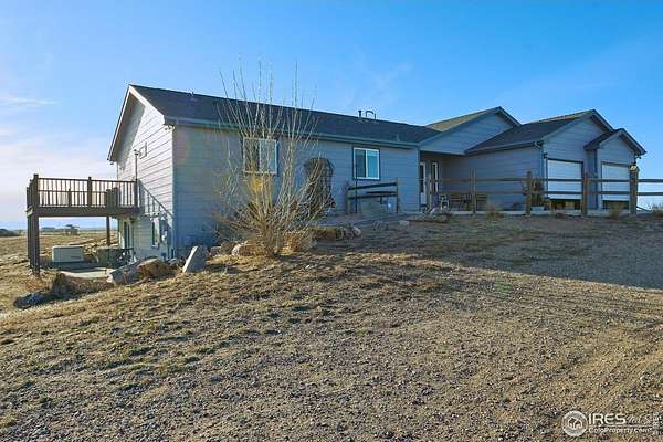 Welcome to this beautiful country home with 45.62 acres, lots of room to grow! This home has many many upgrades that make this home very desirable. This home is equipped with a Generac 16KW WHOLE HOUSE GENERATOR! There are two large concrete patios, front/east facing, and rear/west facing for family get togethers, a large walk out deck from the master bedroom for night gazing at the beautiful stars and northern lights from the privacy of your own backyard, or watching the beautiful sunsets right out your bedroom, while soaking up the quiet and peacefulness of rural life in Northern Colorado. The biggest bonus to this property is the large (36'x 64')heated and insulated shop already equipped with 220v outlets, with a two post auto lift. Oversized RV overhead door (14'x14') with opener along with one standard overhead door. There is a 3 stall/run Horse Barn(15x64) wired with overhead hay storage! A large indoor/outdoor dog kennel, along with two chicken coops, one with power and one without. There is a goat/hog pen(24x40)equipped with power and shelters. The automatic on-demand drinking post ( brand made) is a huge bonus for all you animal lovers. The 6'x8' tac shed is also insulated and is equipped with power. There is a large riding arena, and round pen. The oversized basement has lots of income potential as a rental, or lots of space for a multi family home. So many bonuses to this property for animal lovers as well as gardening lovers. There are several raised garden beds and a garden shed for all your fun tools. This is such a beautiful, fun, and amazing opportunity! Don't miss out!