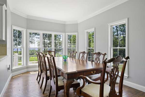 Enjoy four seasons of breathtaking, panoramic views of Lake Winnipesaukee and the Belknap Mountains from this beautiful, custom built home on 3.62 acres about a mile north of Downtown Wolfeboro "The Oldest Summer Resort in America" which offers wonderful shopping and excellent restaurants. Quality and attention to detail are obvious throughout this lovely home with hickory floors, crown molding, wainscoting, pocket doors, double sided fireplaces and an elevator to all three floors. A spacious kitchen with gorgious views, a walk though pantry, a huge south facing deck, an impressive first floor Primary Suite, plenty of closets and large storage areas throughout make it easy living for a couple or family gatherings.