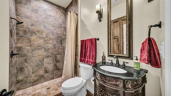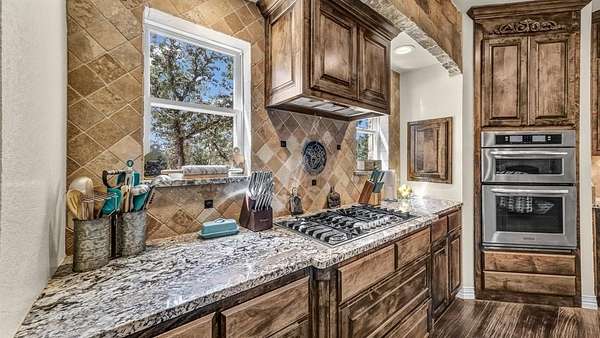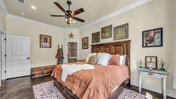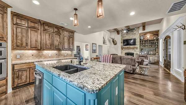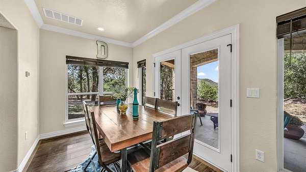 This stately custom home is situated on a hillside property with dramatic topography, large oak trees, moss-covered boulders and a breathtaking view over Lake McIntire and the surrounding valley. This home provides its owner with the ultimate escape from the hustle and bustle of the city. Yet is only a half hour from Weatherford atop Clayton Mountain. And the beauty is not limited to the location! When you walk through the massive iron front door you'll see a dramatic two story foyer with curved staircase. Walking into the great room your immediately be drawn to the two story ceiling with beautiful decorative beam work. The home is filled with old world charm and quality finishes are immediately recognizable. A massive stone fireplace anchors the great room with open picture windows and custom French doors leading to the covered back porch and patio. The owners suite is on the ground floor with beautiful back yard views through the large windows. The kitchen is another anchor for the downstairs with large island your guests will surely gather around during get togethers. As you go upstairs you'll find 2 bedrooms, 1 bathroom and sitting area with balcony that offers views that will leave you breathless. There is no doubt th balcony will host many morning cups of coffee and evening glasses of wine! The view over Lake McIntire will never get old. The home features spray foam insulation, a standing seam metal roof and tankless hot water heater. This home offers the ultimate in privacy with its dramatic hillside location where you can't see another house and no other house can see yours. When you purchase this home you are buying real estate, but you are really buying a lifestyle unmatched anywhere in north Texas! Come see for yourself and you'll never want to leave!
