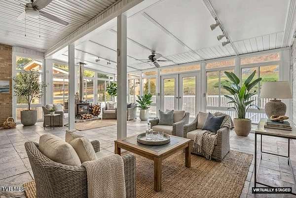 Bedrooms: 4 Bathrooms: 3 Beautiful brick Cape Cod home sitting on 2 lots with Gorgeous Mountain Views. Step into a welcoming foyer flanked by a formal living room on one side and a formal dining room on the other. From the foyer, French doors lead into the spacious great room, highlighted by a full-wall built-in bookshelf with a rolling ladder, a wet bar, gas log fireplace, and convenient countertop seating--all opening seamlessly to the sunroom. The sunroom, added in 2010, offers slate floors, a mini-split system, wood-burning fireplace, TV mount, ceiling fans, and track lighting- making it an enjoyable four-season retreat. The kitchen features hickory cabinets, built-in microwave oven combo, trash compactor, an island with range, and a generous breakfast nook. The main-level primary suite includes a large bathroom with whirlpool tub, shower, walk-in closet, sitting area, and beautiful views to enjoy from the moment you wake. Upstairs, you'll find two additional bedrooms, a sitting room, and multiple storage rooms. Metal roof with snow guards was installed in 2017 and the Generac generator will give you peace of mind. The backyard is fenced with chain link and vinyl. Info taken from tax records and or 3rd party. Buyer to verify all info.