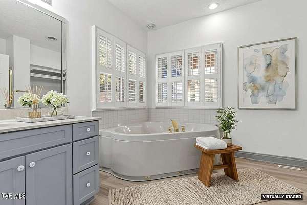 - 2+ Person Tub, Bar, Built-In Features, Eat-In Kitchen, Entrance Foyer, Kitchen Island, Kitchen/Dining Combo, Laminate Counters, Primary Downstairs, Utility Sink, Wet Bar