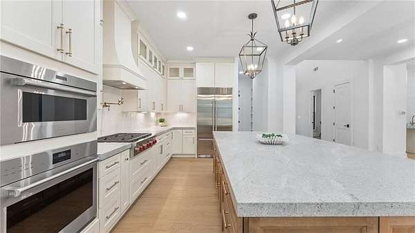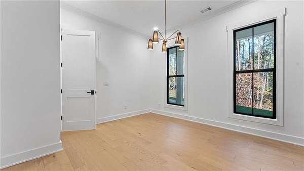 Welcome to an extraordinary new construction estate offering over 6,000 square feet of elevated living, nestled on five serene acres in the highly acclaimed Cherokee County School district. Designed for discerning buyers, this luxury home perfectly blends timeless design with modern conveniences. From the moment you arrive, you're greeted by stunning curb appeal featuring elegant gas lanterns, a natural stone rocking chair front porch, and a three-car garage. Step through the front door into a grand two-story vaulted foyer that immediately sets the tone for the home's elegance, then transitions seamlessly into the expansive open living space with soaring 10-foot ceilings, wide-plank hardwoods, and designer finishes throughout. At the heart of the home, a chef's dream kitchen awaits--complete with top-of-the-line Wolf Gas Range, 42" Sub-Zero French Door Refrigerator, custom cabinetry, a sleek Kettle Faucet, Wolf Speed Oven and a Wolf Single Oven below. The stunning 10-foot kitchen island serves as the centerpiece of the culinary space, offering generous seating with an extended overhang perfect for casual dining or entertaining. Thoughtfully designed with functionality in mind, it features additional built-in storage on both ends-ideal for keeping serving pieces, cookbooks, or entertaining essentials neatly tucked away yet easily accessible. Just steps away, you will find a large walk-in pantry with custom built-ins and a "Bulk Grocery Door" make grocery unloading effortless. A large laundry room with a farmhouse sink and more storage completes this space that makes daily living effortless. Retreat to the luxurious owner's suite with private deck access, hardwood flooring, and a spa-inspired bath with granite double vanities, a free-standing soaking tub, and a generous shower with multiple heads. The custom walk-in closet is a showstopper--offering custom built-ins and enough room to add a center island. Three secondary en suite bedrooms offer walk-in closets, custom shelving, and hardwoods throughout. Upstairs, a private fifth bedroom suite or bonus room provides flexible space for guests, a teen suite, or in-law suite. Entertain with ease from your covered and uncovered back porch, or imagine your dream backyard oasis--perfect for a future sparkling pool, spa-like hot tub, and patio living. With over 2400 square feet of unfinished space in the terrace level, there's room to personalize with a wine cellar, media room, gym, or guest suite. With access to top-tier schools and the peace of five private acres, this is refined country living-just minutes from shopping, dining and outdoor recreation.