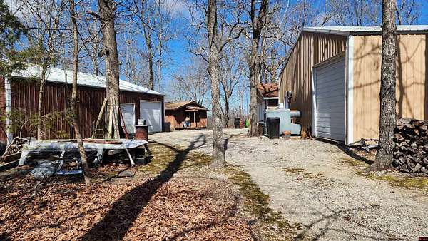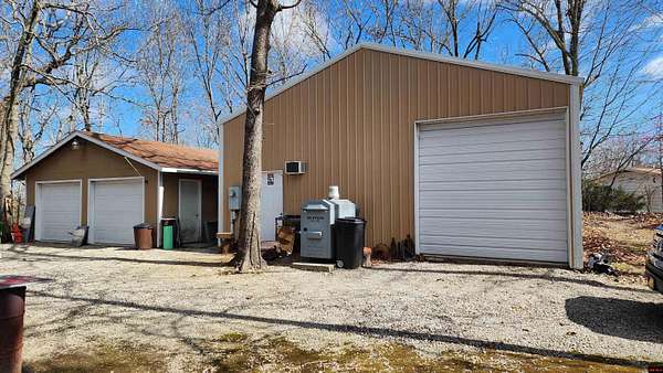 Cozy 1-bedroom, 1-bath cabin offering 1,080 sq ft on 2 wooded acres m/l, ideally located with great access to Bull Shoals Lake and just minutes from the White River. Only 15 minutes to Mountain Home, providing convenient access to shopping, dining, and medical facilities. This unique property features three spacious shops, including a 30 x 50 auto shop equipped with both a 4-post and 2-post lift, air compressor, and sandblaster—perfect for car enthusiasts or a home-based business. Additional 24 x 36 woodshop and 24 x 36 storage building offer ample space for hobbies or storage. Situated on a corner lot, this property would make an excellent retreat, retirement home, or automotive workspace. Personal property auction scheduled for April 11, 2026, don’t miss this opportunity!