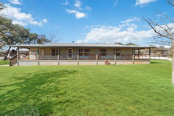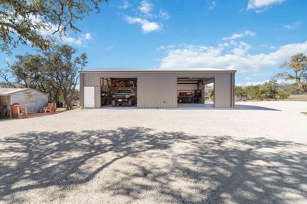 Set on over eight peaceful Hill Country acres, this rare property includes two residences-one newly built in 2022-offering both comfort and charm. Enjoy bamboo floors, solid wood doors, and quartz countertops, with classic penny tile bathrooms. A wraparound porch and sunroom with hot tub create ideal spaces to relax and take in the views. The 2,027 sq. ft. commercial-grade workshop by Texas Steel Buildings features three automatic doors, HVAC, an office, and a full bathroom-perfect for business, projects, or hobbies. Outside, it's fully fenced and cross-fenced with 5' horse fencing, plus a pole barn, chicken coop, two deer-protected gardens, fruit and pecan trees, multiple carports, RV hookup, and a circular drive. NO ZONING RESTRICTIONS, AG exempt, and endless potential-this one has it all.