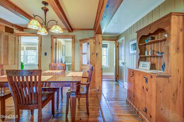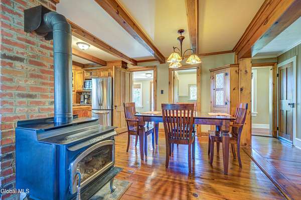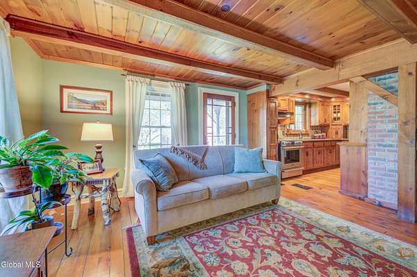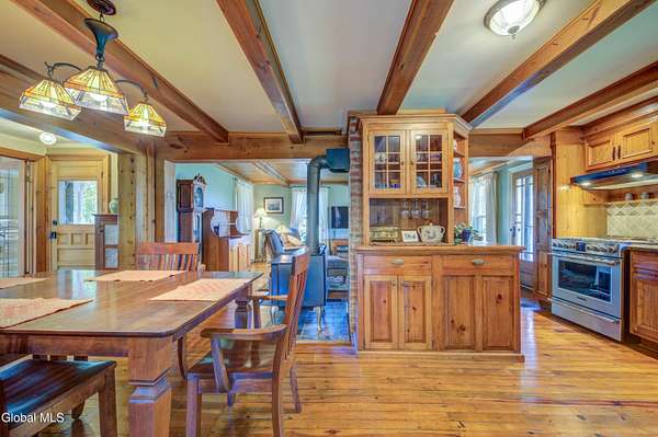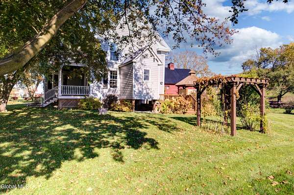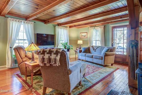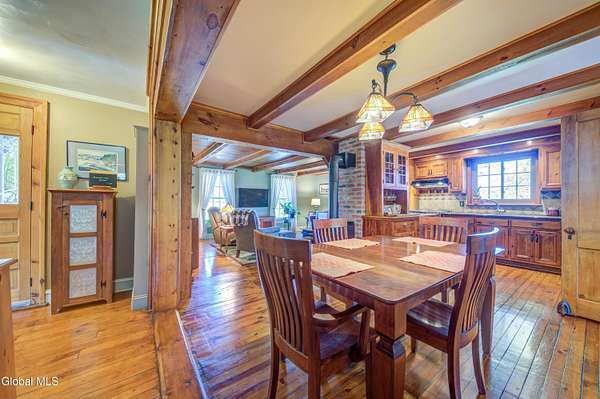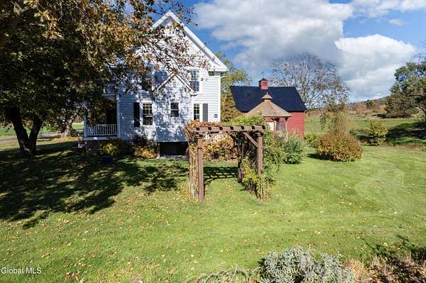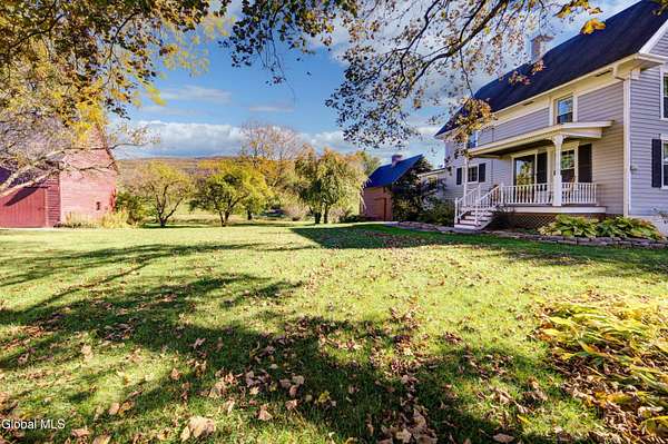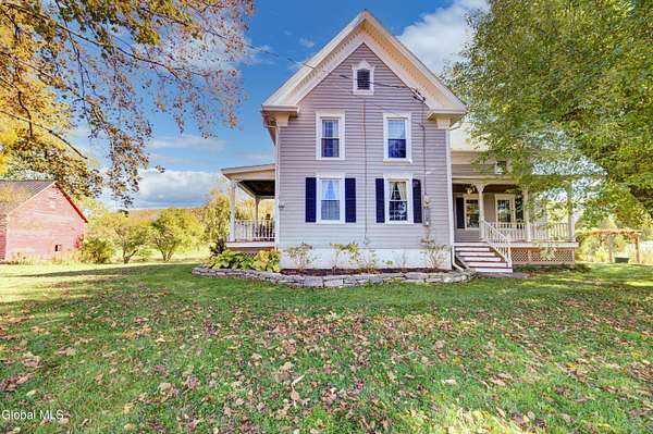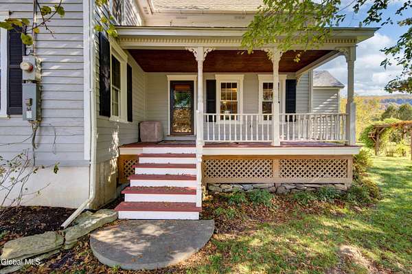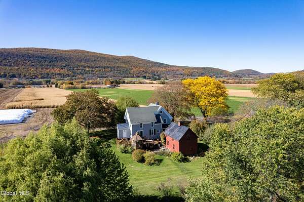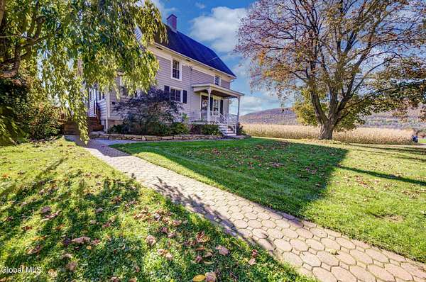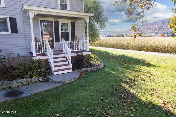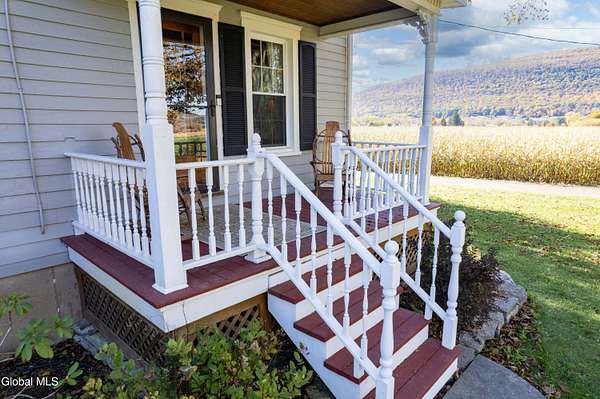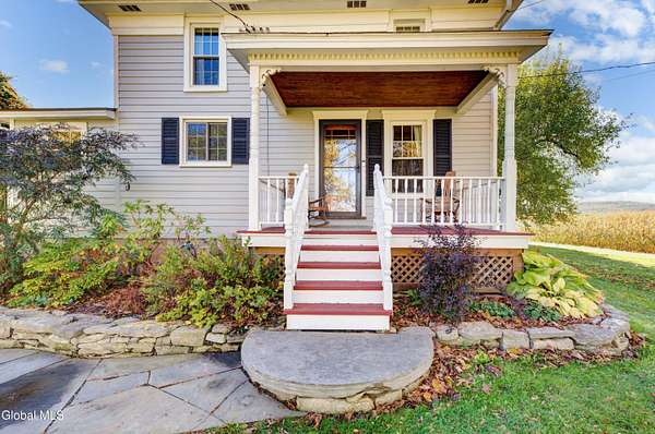 *Open House Saturday 10/25 10am-12pm*Step back in time with all the comforts of modern living in this beautifully restored 2,300 sq ft 1870 farmhouse nestled in the heart of the scenic Schoharie Valley. Offering 4 bedrooms and 1.5 baths, this historic gem blends classic charm with thoughtful updates that make everyday living a delight. Inside you will find stunning fir wood flooring throughout, tin and tray ceilings, elegant crown molding, original doors and hardware. The custom country kitchen features handcrafted pine cabinetry, a gas cooktop and newer appliances---perfect for home chefs and entertainers alike. The sun-filled living and dining area centers around a high-efficiency Lennox wood burning stove, while radiant heated floors on the main level keep the home warm and inviting year round. Significant structural updates include the home being elevated above the floodplain in 2016 with a brand-new poured concrete foundation and 4-foot-high crawl space. New electrical wiring with a whole house surge protector and energy-efficient Comfort Windows were installed in 2014 for added comfort and peace of mind with a 30 year transferrable warranty. A walk up-attic offers easily accessible storage, while outside you can soak in spectacular Schoharie Valley views from the front and back porches or unwind on the paver patio surrounded by beautiful gardens, stone wall and a bluestone walk way. A 2 story barn at the rear of the property is perfect for a workshop, studio or additional storage. The property is on the snowmobile trail and provides easy access to the Long Path Trail system. Privacy with the convenience of being within walking distance to the quaint town of Middleburgh and all of the stores and restaurants it has to offer. Don't miss this unique opportunity to own a piece of local history with modern comforts. A truly must see property in one of upstate New York's most picturesque settings.