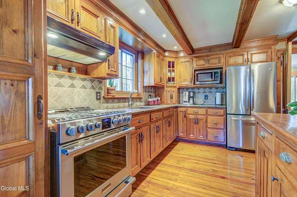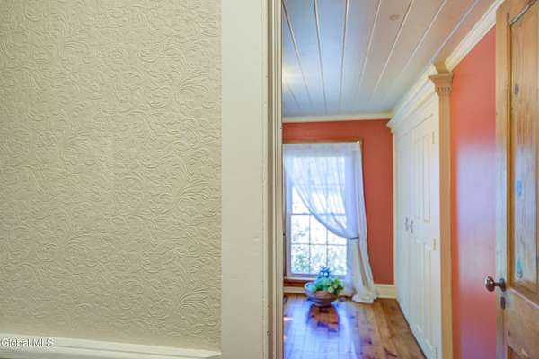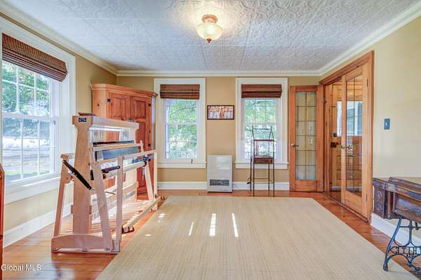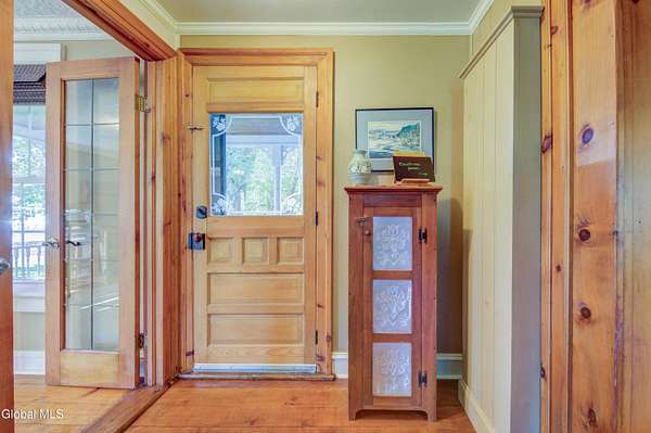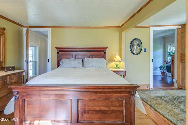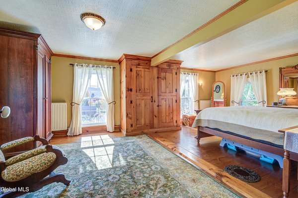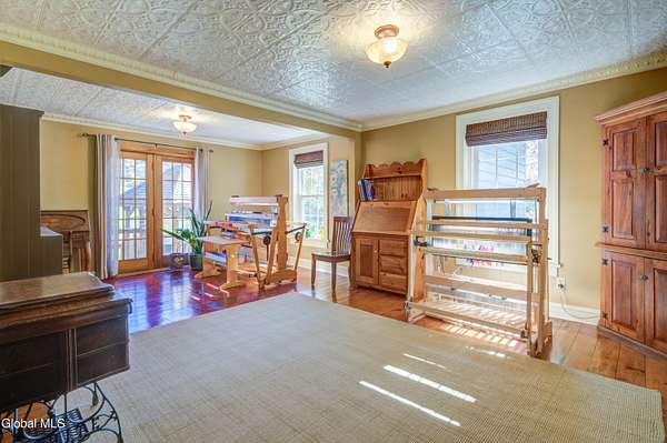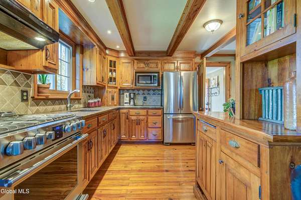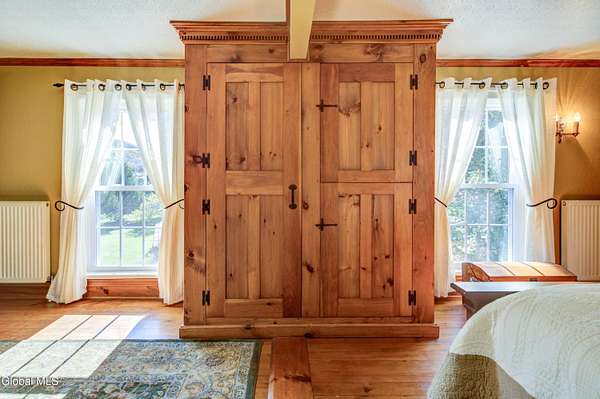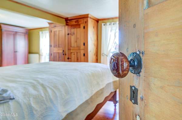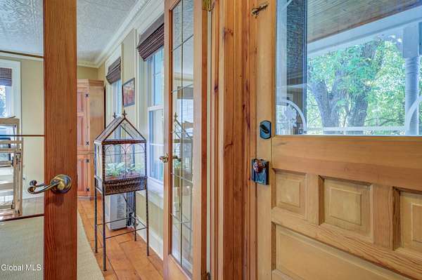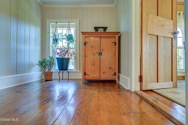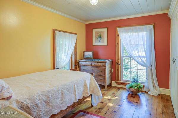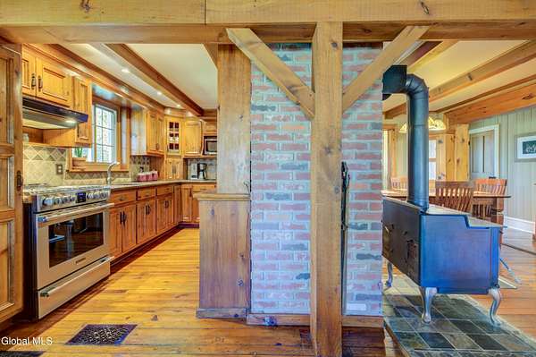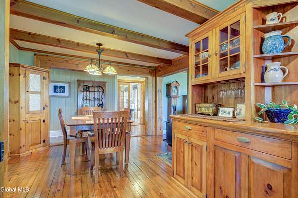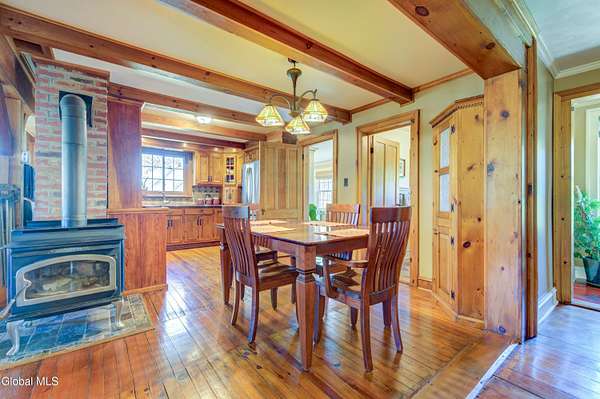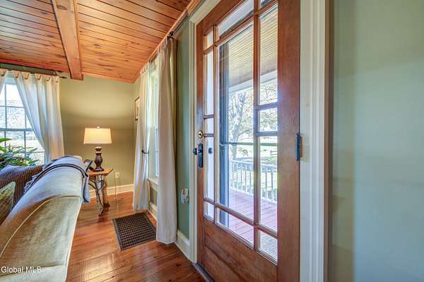 *Open House Saturday 10/25 10am-12pm*Step back in time with all the comforts of modern living in this beautifully restored 2,300 sq ft 1870 farmhouse nestled in the heart of the scenic Schoharie Valley. Offering 4 bedrooms and 1.5 baths, this historic gem blends classic charm with thoughtful updates that make everyday living a delight. Inside you will find stunning fir wood flooring throughout, tin and tray ceilings, elegant crown molding, original doors and hardware. The custom country kitchen features handcrafted pine cabinetry, a gas cooktop and newer appliances---perfect for home chefs and entertainers alike. The sun-filled living and dining area centers around a high-efficiency Lennox wood burning stove, while radiant heated floors on the main level keep the home warm and inviting year round. Significant structural updates include the home being elevated above the floodplain in 2016 with a brand-new poured concrete foundation and 4-foot-high crawl space. New electrical wiring with a whole house surge protector and energy-efficient Comfort Windows were installed in 2014 for added comfort and peace of mind with a 30 year transferrable warranty. A walk up-attic offers easily accessible storage, while outside you can soak in spectacular Schoharie Valley views from the front and back porches or unwind on the paver patio surrounded by beautiful gardens, stone wall and a bluestone walk way. A 2 story barn at the rear of the property is perfect for a workshop, studio or additional storage. The property is on the snowmobile trail and provides easy access to the Long Path Trail system. Privacy with the convenience of being within walking distance to the quaint town of Middleburgh and all of the stores and restaurants it has to offer. Don't miss this unique opportunity to own a piece of local history with modern comforts. A truly must see property in one of upstate New York's most picturesque settings.