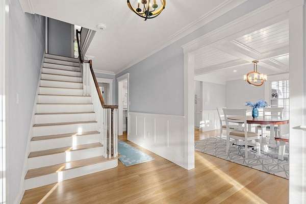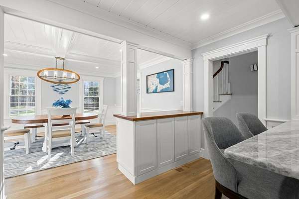 Charming Cape Cod-Inspired Retreat in Easton is Nestled on a beautifully manicured 1.7-acre lot, this stunning 3-bedroom, 2.5-bath home charms you from the moment you arrive, you'll be captivated by the lush green lawn and curb appeal. Step through the front door into an airy, open-concept layout featuring beautiful hardwood floors throughout the main and upper levels. The heart of the home is the brand-new, all-white chef's kitchen, complete with quartz countertops, high-end stainless steel appliances, and generous counter space -- perfect for entertaining or quiet family dinners.A formal dining room with a striking coffered ceiling adds a touch of elegance, while the spacious living room centers around a cozy fireplace, ideal for relaxing evenings. Upstairs, the luxurious primary suite boasts its own fireplace, offering warmth serenity, and an abundance of natural light. With its coastal-inspired palette this home offers a peaceful retreat without sacrificing style or space.