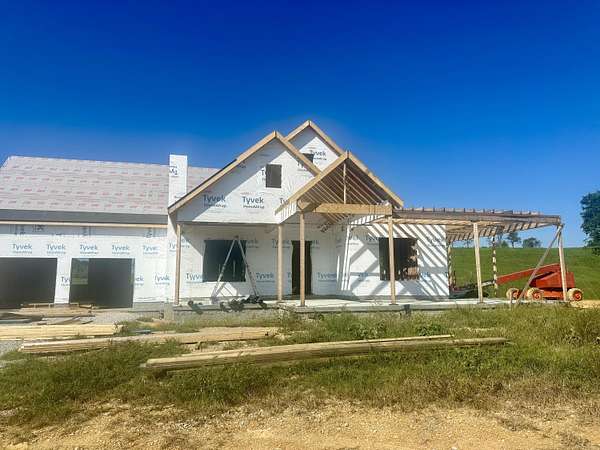 New Barndominium under construction nestled on 5.03 acres located in Pittsburg Landing. Pittsburg Landing is London's newest acreage development located just 3 miles from North Laurel High School. This gorgeous build is already under construction and will host 5 bedrooms and 3 baths. Open floor plan has vaulted wood ceiling in great room and kitchen. Propane Fireplace in great room. Owner's suite in on main entry level and will have walk in shower and Spa type soaker tub. They are 2 other bedrooms on the main level. Two additional bedrooms are on upper level. Oversize 2 car garage is 677 SF. Huge wrap around porch across front of home and down one full side will have 2 vaulted porches and connective porches.