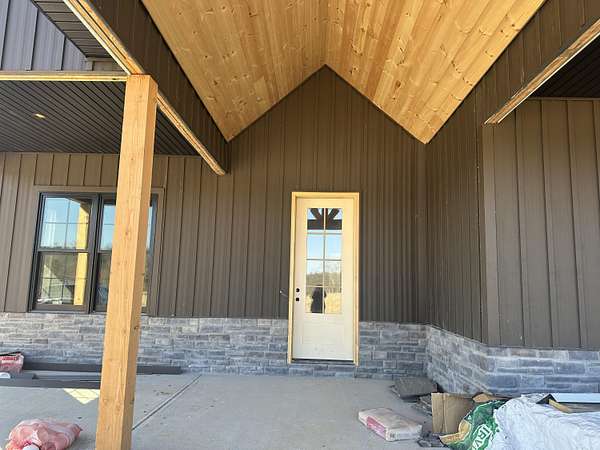 New Barndominium under construction nestled on 5.03 acres located in Pittsburg Landing. Pittsburg Landing is London's newest acreage development located just 3 miles from North Laurel High School. This gorgeous build is already under construction and host 5 bedrooms and 3 baths. Open floor plan has vaulted wood ceiling in great room and kitchen. Propane Fireplace in great room. Owner's suite in on main entry level and has walk in shower and Spa type soaker tub. They are 2 other bedrooms on the main level. Two additional bedrooms are on upper level. Oversize 2 car garage is 677 SF. Huge wrap around porch across front of home and down one full side will have 2 vaulted porches and connective porches.