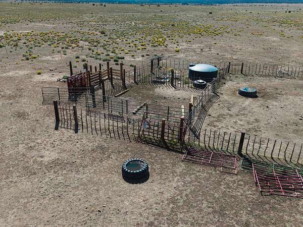 Other improvements include a 40x60 insulated metal shop with power, water, plumbing, and solar panels, plus an open Quonset with utilities. On the north parcel, a dirt and sand open arena (approx. 250?x350?) provides equestrian functionality. On the south parcel, corrals and chutes support livestock handling, along with two RV hookups for added flexibility. The property benefits from five wells, supplemented by numerous dirt tanks and tire drinkers distributing water across the ranch.