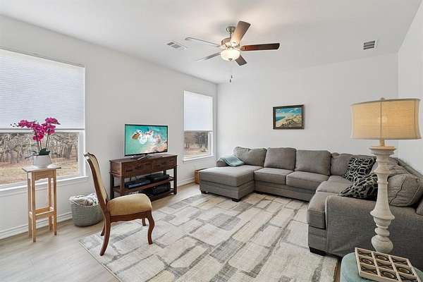 This is the one! Modern custom farmhouse on 4.28 private wooded acres backing directly to 400+ acres of LBJ National Grasslands. Enjoy peaceful single story living with a forever backyard filled with mature trees, abundant wildlife, rolling hills, and a seasonal creek. A vast natural setting for hiking and exploring begins right outside your door.