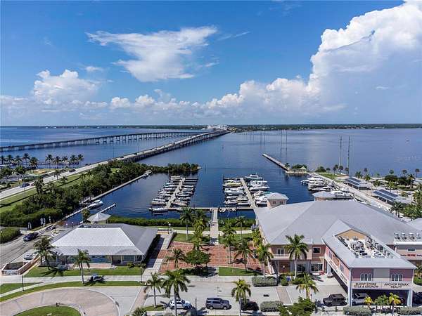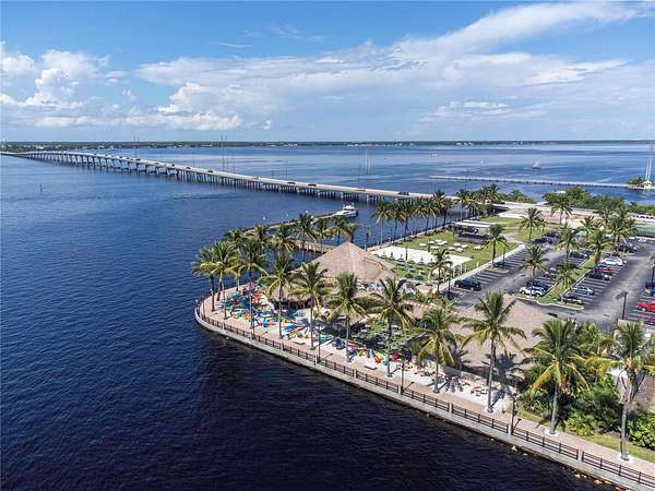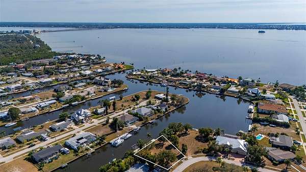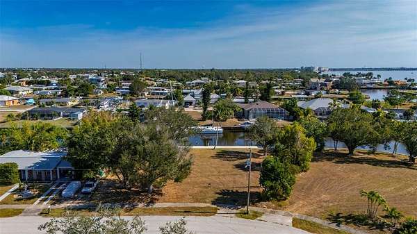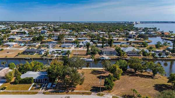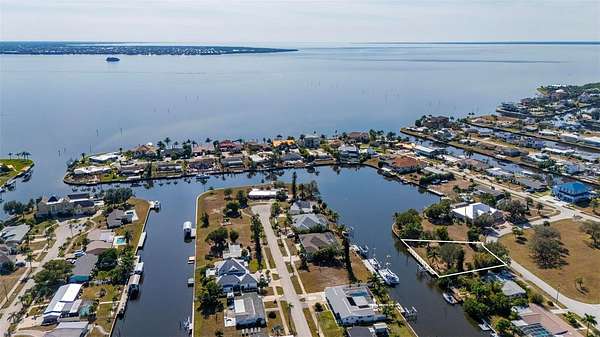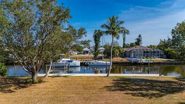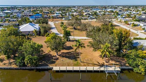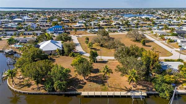 This exceptional .34-acre vacant waterfront lot offers direct sailboat access to the Gulf of Mexico with no bridges, and is ideally located just minutes by boat from the new Sunseeker Resort and downtown Punta Gorda. Directly across from Charlotte County's Severin Park, the property enjoys a peaceful setting with attractive green space views. The lot measures approximately 95 feet across the front, 138 feet on the right side, 125 feet on the left, and offers 110 feet of waterfront. Extensive improvements have already been completed, including a new seawall cap, hydro-static pressure jet filters, and polyurethane-sealed seams installed by Florida Seawall Solutions in 2022. In 2023, a 97' x 8' marginal dock was constructed along the seawall, with all pilings wrapped in vinyl and cut 60 inches above deck height. The dock features Owens Corning "Barefoot Sands" composite decking, which stays cool even in high temperatures, along with two outer mooring poles. A fully loaded 16,000-lb Deco Concept CRS remote-operated boat lift was also installed, supported by four additional vinyl-wrapped lift pilings. Electric and water service run to the dock and include active 50-amp, 30-amp, and 110-volt outlets, as well as a waterline with backflow preventer. All sewer and water charges are current and paid monthly, allowing the future owner to avoid impact hookup fees when building. With its prime location, high-end improvements, and true sailboat access, this lot is an ideal site for your custom Gulf-access dream home.