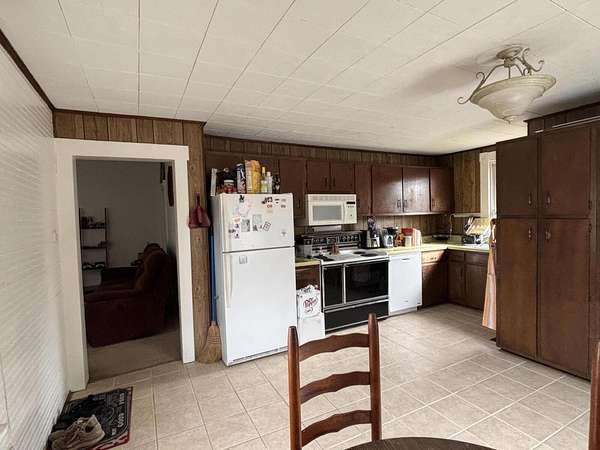 Magnificent magnolia trees tower over this large lot. The land alone is amazing. The home needs some TLC. However, it is a comfortable 3 or 4 bedroom home with a large kitchen and high ceilings. There is an enclosed porch used as a sunroom on one side and a covered enclosed porch on the front elevation. The bedrooms are all main floor along with the laundry room. The appliances all stay. This is a great buy for the possibilities it holds! Roof painted 3 years ago. heat pump is a gas backup. LP Tank is leased from Davenport Energy. The fireplace is not used. The Chimney has been removed. It is original to the house. Located in the front left room of the home.