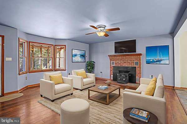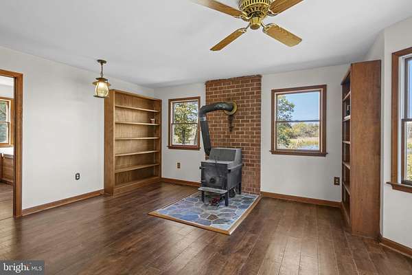 Experience Unmatched Privacy and Tranquility from this unique non-riparian waterfront home set on over 3+ scenic acres. Fall in love with sweeping water views and the serene presence of native wildlife-waterfowl, deer, eagles, and more-all just outside your door. Enjoy panoramic vistas of a natural pond, with the stunning Chesapeake Bay visible in the distance. On clear days, the Bay Bridge is even within sight. The home features a relaxing screened porch, a spacious kitchen that flows into a cozy living area with a wood stove-perfect for chilly evenings. The main level includes a bedroom and full bath, plus an additional room ideal for an office or second living space, also with a wood stove. Upstairs, the primary bedroom offers breathtaking water views, accompanied by another bedroom and a full bath. A barn/stable on the property makes it ideal for horses or a home-based business with office space. This is truly a one-of-a-kind property-peaceful, picturesque, and full of potential. Come see it for yourself.