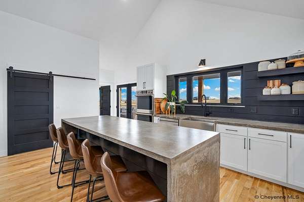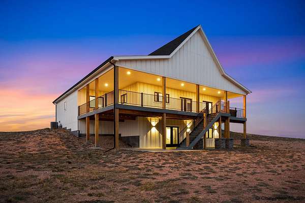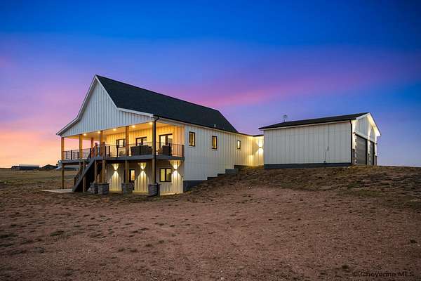 Enjoy this custom-built modern farmhouse with its blend of contemporary luxury and rural tranquility. This architectural gem offers the space you’ve been dreaming of with the high-end finishes you deserve. Spacious living with 5 generous bedrooms and 3 sophisticated bathrooms. The expansive kitchen has black shiplap, white shaker-style cabinets and hand-poured concrete countertops that provide a durable and uniquely textured workspace complemented by a massive center island perfect for meal prep or casual entertaining. The rich hardwood floors tie everything together. There is plenty of storage inside and out, including the 3-car garage featuring modern glass-panel doors and ample room for a workshop or storage. Whether you're hosting a summer sunset dinner or enjoying a quiet morning, the outdoor spaces in the back of the home offer a seamless extension of the home’s luxury interior and is perfect for outdoor living.