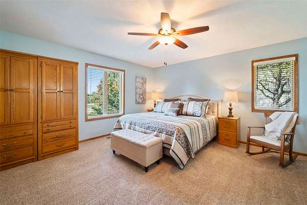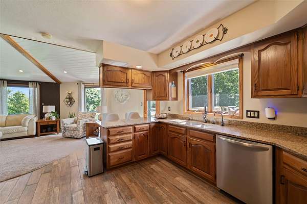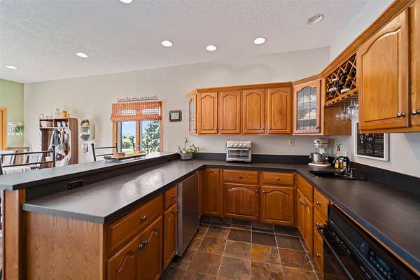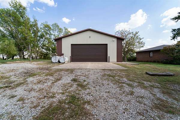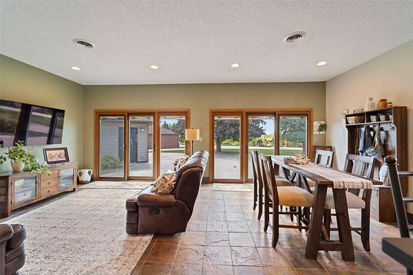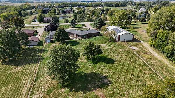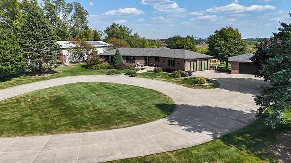 Welcome Home to Your Acreage Retreat! This beautiful custom built 2x6 construction 5-bedroom, 3-bath brick ranch offers over 4200 sq. ft. of finished living space with the flexibility of a potential 6th bedroom or bonus room. Designed for both comfort and convenience, the home features two main floor kitchens-the primary with granite countertops, custom oak cabinets, stainless steel appliances, 2 wall ovens, wine fridge, and Revere OSM system, the second kitchen offers slate countertops, beverage fridge, custom oak cabinets, and a wall oven. Enjoy cozy evenings by the wood fireplace, everyday ease with a mudroom, and modern updates like slate tile floors in the family room, paid off solar panels, natural gas generator, custom Pella sliders with built-in blinds, a new roof (2023), and a brand-new deck completed in Fall 2025. Set on 45.66 acres, 9 total parcels included this retreat includes tillable land, CRP-qualified parcels, and trails perfect for off-roading or outdoor enjoyment. An impressive 36' x 88' x 15' (3,168 sq. ft.) shop provides endless space for hobbies, storage, or business. Whether you're looking for space to gather, grow, or get away-this acreage offers it all! Contact your favorite Realtor today for the private showing!