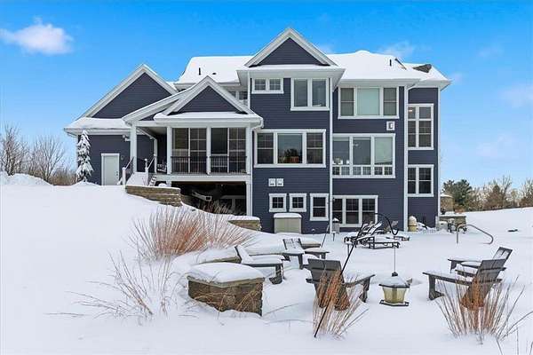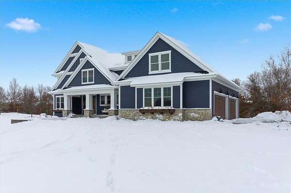 Nestled on a private lake, this stunning 4-bedroom, 4-bath home offers the perfect blend of luxury, comfort, and breathtaking views. Every detail has been thoughtfully designed with high-end finishes and exceptional craftsmanship throughout. Step through the grand front door and into the impressive living room, featuring coffered ceilings, a cozy gas fireplace, and panoramic views of the lake. Adjacent to the living room is a show-stopping kitchen complete with a massive center island topped with granite countertops, stainless steel appliances including a double oven and cooktop with overhead exhaust, and an expansive butler's pantry offering ample storage and prep space. Just off the kitchen, the dining room provides yet another incredible lake view, while the adjoining three-season porch--with its own fireplace--creates the perfect setting to relax or entertain year-round. A spacious mudroom connects to the finished and heated 4-car garage, providing convenience and functionality. An elegant office and a stylish half bath complete the main level. Upstairs, the luxurious primary suite is a true retreat featuring a spa-like bathroom with a soaking tub overlooking the lake and a walk-in shower. Another bedroom includes a private bathroom, while two additional bedrooms share a beautifully designed Jack and Jill bath. The lower level is unfinished but thoughtfully planned, with rough-ins for an additional bathroom and walkout access to the scenic patio. Outside, you'll find a backyard oasis--complete with an in-ground pool, lush landscaping, and serene views that make every day feel like a getaway. From the craftsmanship to the setting, this remarkable property delivers the ultimate lakefront living experience.