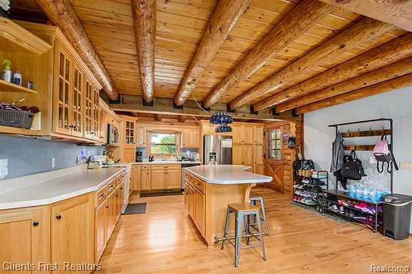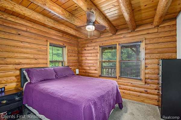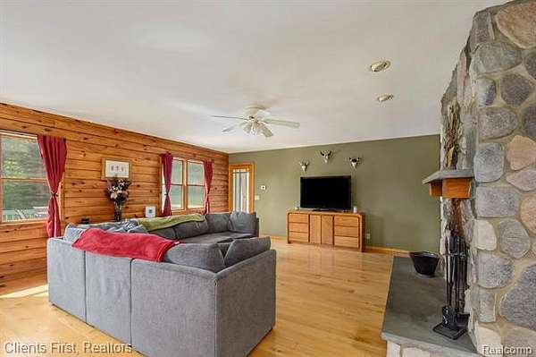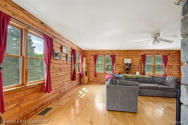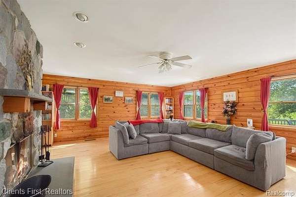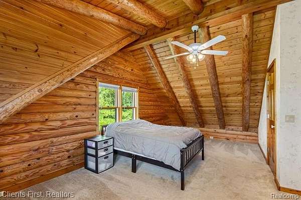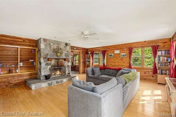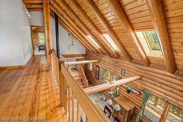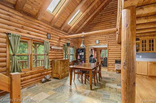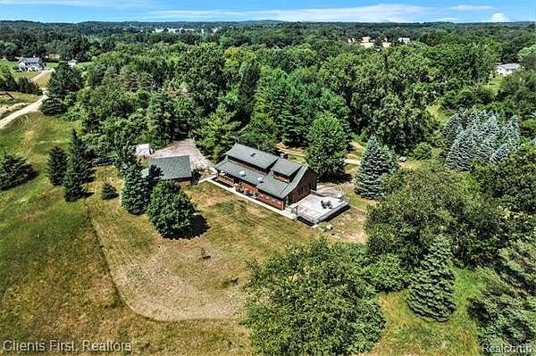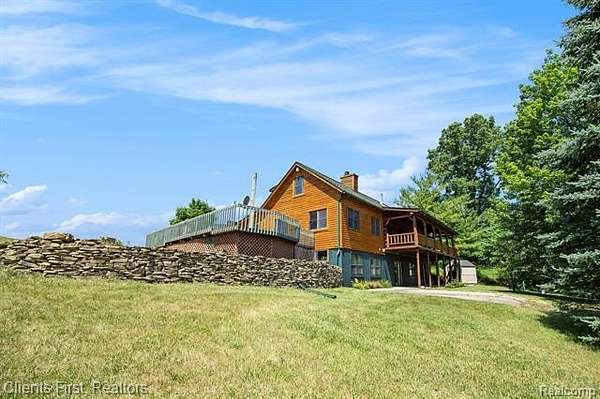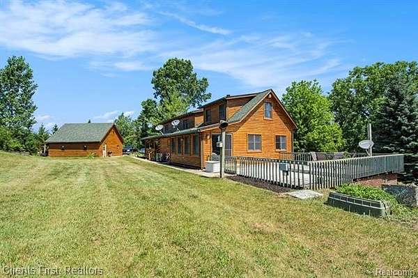 This gorgeous log cabin is your own personal getaway, secluded on nearly 4 acres, but just a short 15 minute drive to downtown Ann Arbor - plus it's situated in the award-winning Chelsea school district! Plenty of room to spread out with over 4,000 finished square feet, including a walk-out basement that can be used as either an additional living space, or as a separate apartment complete with its own private entrance! The main floor features an open floor plan with valued ceilings and skylights, allowing the natural light to stream in. Kitchen is large and inviting with ample storage space, high end updates, and a beautiful island for preparing meals. Dining room and great room are perfect for entertaining, featuring a wood-burning stove as well as a cozy fireplace and mantle. First floor primary bedroom and first floor laundry provide maximum convenience. The upper level features two additional bedrooms, plus a loft area that can be used as an office, playroom, or library - the possibilities are endless! Finished basement has its own fully appointed kitchen, an additional laundry room, living room with fireplace, a full bath, two additional bedrooms, and a walkout to a spacious covered patio. The landscape is lined with luscious fruit trees and foliage, and is perfect for bonfires, family gatherings, hunting, and more! Property includes a 2.5 car garage with workshop, and an RV hookup with french drain as well. You don't want to miss the rare opportunity to make this wonderful and unique home your own!