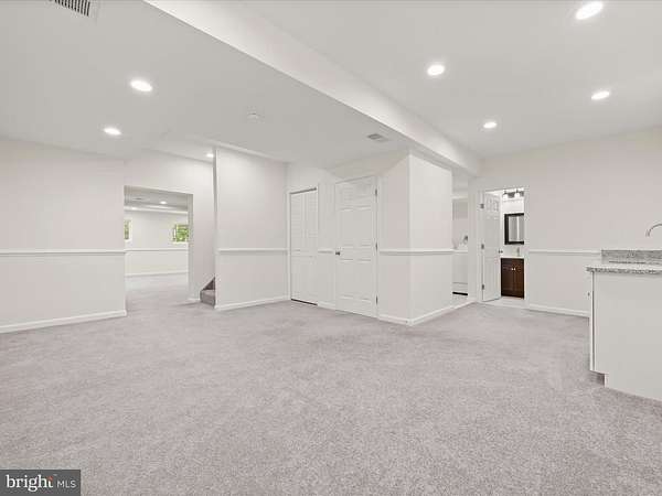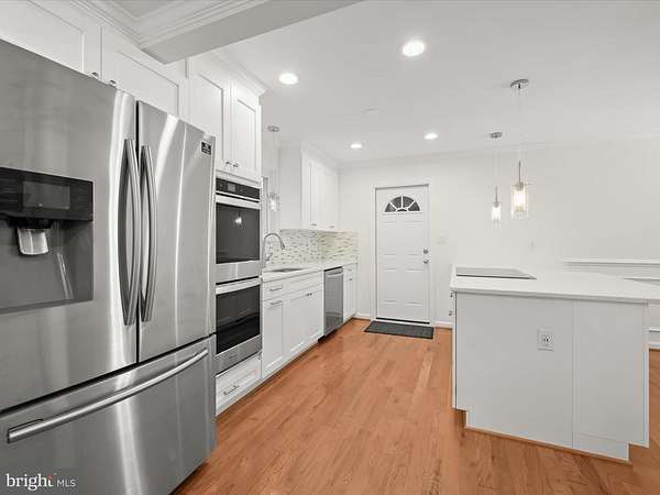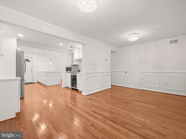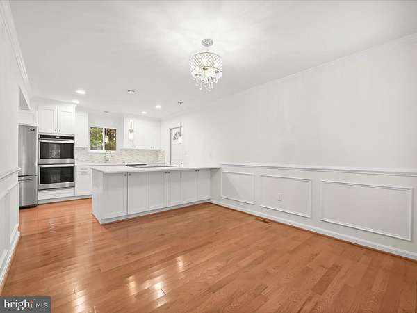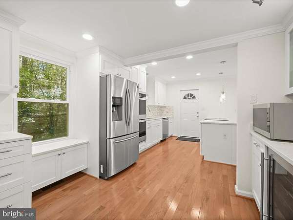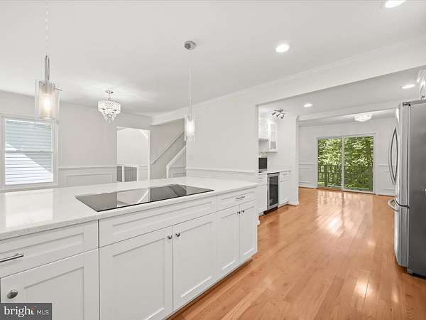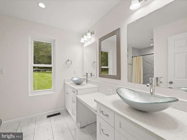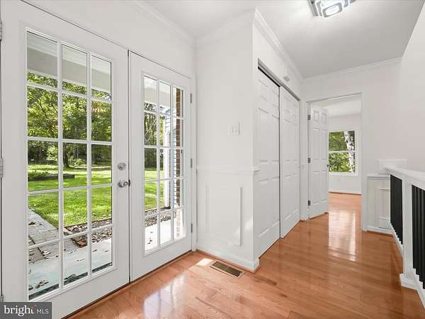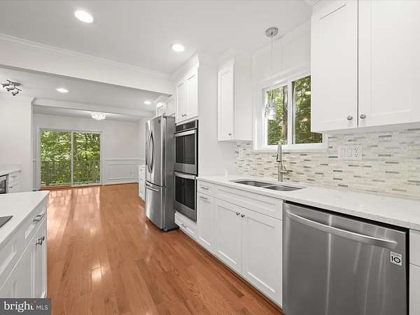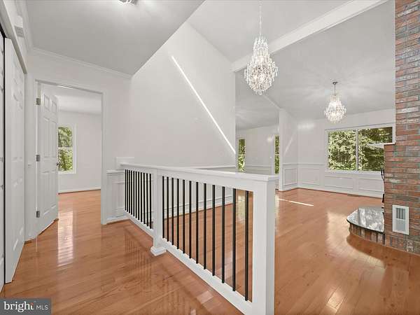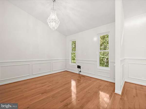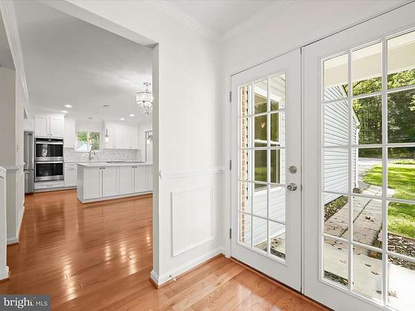 Nestled on a wooded cul-de-sac in the serene Forest Hills subdivision, this stunning brick Colonial has been meticulously renovated in 2020, seamlessly blending timeless elegance with modern luxury. Spanning over 3,000 square feet across three finished levels, the home offers 4 spacious bedrooms and 4.5 bathrooms, providing ample space for both relaxation and entertaining. Step inside to discover a harmonious mix of hardwood flooring, stylish lighting fixtures, and architectural details including crown moldings and box wainscoting that elevate the living spaces. The living room welcomes you with soaring vaulted ceilings, a floor-to-ceiling brick fireplace, and glamorous chandeliers, creating an impressive focal point for gatherings. Adjacent, the den features matching wainscoting and abundant natural light, offering a distinguished space for work or leisure. The chef-inspired kitchen is a showpiece, complete with stainless steel appliances, double ovens, an induction cooktop, sparkling quartz countertops, and an expansive island perfect for casual dining or culinary creations. A butler's pantry with a wine cooler and charming window seat enhances functionality, while the dining area, with a sliding glass door leading to the balcony, provides a seamless indoor-outdoor connection for entertaining or grilling. Retreat to the main-level primary suite, a private haven with a walk-in closet and a luxurious en-suite bath featuring upgraded countertops with modern vessel sinks, and a tiled tub/shower surround accented by marble-look tile and mosaic inlay. Upstairs, one bedroom enjoys an en-suite bath, while the other two share a beautifully updated full hall bath. The fully finished basement expands the home's living and entertaining options, offering an expansive family room with a second brick fireplace and sliding glass access to the backyard. A recreation area with a granite wet bar and mini refrigerator is perfect for entertaining or cozy movie nights. The lower level also includes a laundry room and a third full bath. Outside, the property sits on a generous two-acre lot backing to lush parkland and trees, offering a tranquil escape. The balcony provides picturesque views, and the included additional two-acre lot expands the total property to four acres. With an attached two-car garage and ample driveway parking, convenience and accessibility are unmatched. Bowie, MD provides a variety of amenities for every lifestyle. Residents enjoy shopping and dining at Bowie Town Center, Hilltop Plaza, and Bowie Plaza, as well as recreational opportunities at Allen Pond Park and the Bowie Community Center. Major highways ensure easy access to Washington, D.C., Baltimore, and Annapolis, combining small-town charm with city convenience. This exquisite home is a rare find, offering luxurious interior finishes, expansive outdoor spaces, and a serene, private setting, a perfect sanctuary for those seeking elegance and comfort. SALE INCLUDES TWO TAX IDs FOR A TOTAL OF 4 ACRES.