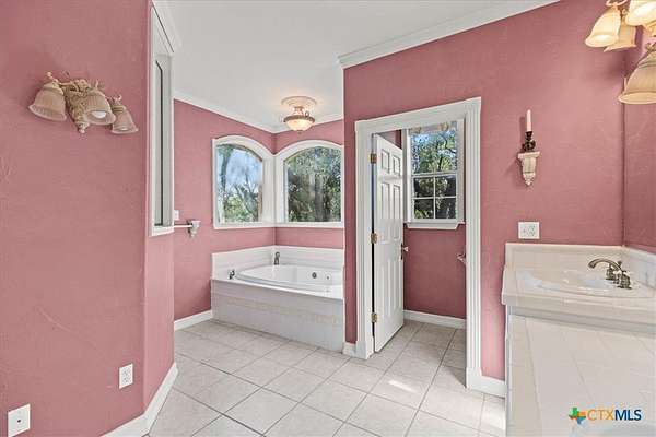 - Bookcases, Ceiling Fans, Central Vacuum, Crown Molding, Dining Area, Double Vanity, Dry Bar, Entrance Foyer, Garden Tub Roman Tub, Home Office, Intercom, Main Level Primary, Multiple Dining Areas, Primary Downstairs, Recessed Lighting, Separate Formal Dining Room, Separate Shower, Split Bedrooms, Walk In Closets, Window Treatments, Wired For Data
