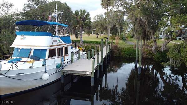 OVERSIZED RIVERFRONT! In Riverwind Cove - a premier boating and equestrian community nestled along the scenic banks of the Caloosahatchee River. This nearly one-acre riverfront lot is cleared, build-ready, and offers deep-water frontage with stunning views of a private island just across the river. A private boat dock on a gentle river bend provides direct access for boating, fishing, and waterfront living at its finest. The southern exposure is ideal for filling your future custom home with natural light while creating the perfect setting for a pool, outdoor entertaining, and sunset lounging. Equestrian-friendly living sets this community apart-bring your horses, with access to community stables for boarding. Tucked away from heavy traffic yet conveniently located near SR 31, SR 80, and Interstate 75, this location also offers easy access to W.P. Franklin Campground and Babcock Ranch. Oakview Circle captures the essence of Old Florida charm, framed by moss-draped live oak canopies. The only riverfront lot currently available in Riverwind Cove-a truly rare opportunity to build your dream waterfront estate.