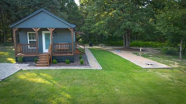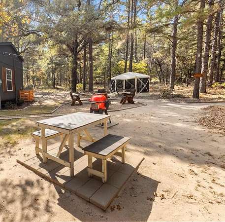 Beautiful and unique property near Tyler State Park. Cabin built in 2022 on 11 + acres. Potential Airbnb, amenities include a mile long walking trail that loops though your private wooded oasis, volleyball & badminton court, regulation size cornhole court, firepit, sprinkler system to keep your lawn green and lush, 10 x 12 shed with electricity and no HOA. The cabin is 864 square feet of living space (576 sqft main floor & 288 sqft loft area) with 1 bedroom & 1 bathroom on the main floor and the loft area that can accommodate multiple beds with plenty of room to spare. Functioning currently as an Airbnb with multiple acres to add additional dwellings. This property could be your vacation home, retirement home, or build a larger main home and use the cabin for income or MIL house. The property is move in ready and Airbnb ready, furnishings available for an additional cost. DO NOT GO TO PROPERTY WITHOUT AN APPOINTMENT. Busy Airbnb.