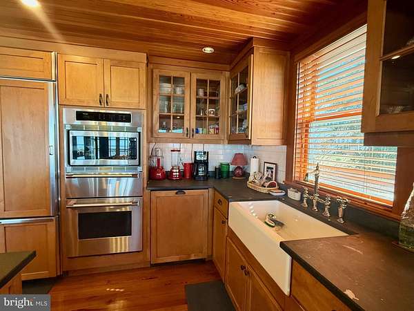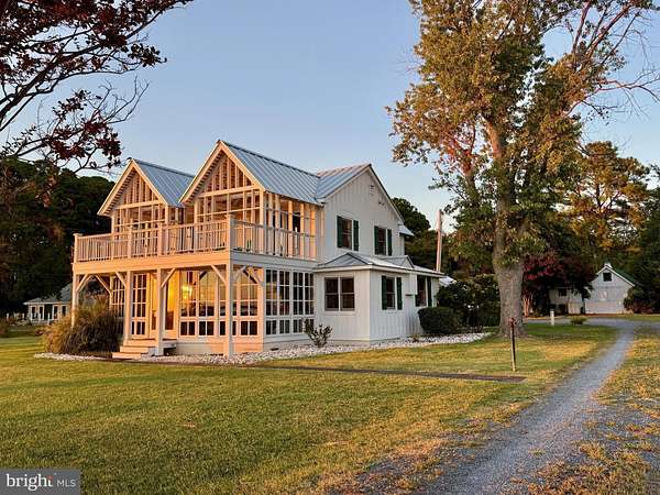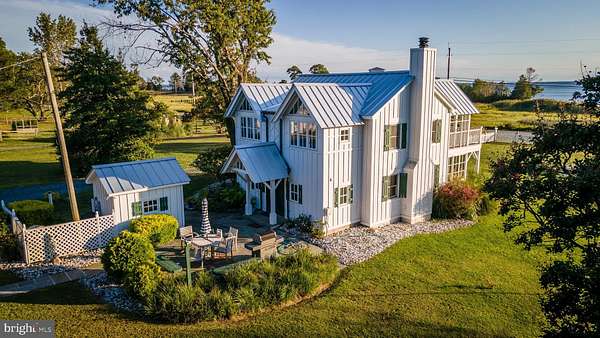 Nestled along the Maryland shore of the Potomac River near its convergence with the Chesapeake Bay, St. George Island is rich in early Maryland history and renowned for its natural beauty-especially the dramatic sunsets over the Potomac. Situated in the heart of the island, Island House is a distinctive architectural gem. This two-story residence showcases an expansive glass frontage and a second-story balcony offering spectacular water views, often filled with sightings of great blue herons, ospreys, passing boats, and unforgettable sunsets. The main level features an open-concept great room with a wood-burning fireplace, pine hardwood flooring, and a modern gourmet kitchen. Radiant in-floor heat provides year-round comfort. The upper level includes a spacious primary bedroom, guest room, and a cozy bunk room, along with two full baths and a convenient laundry area. Major updates include a standing seam metal roof (2021) and a new well pump installed last year. Outdoor living is equally impressive, with a beautiful in-ground swimming pool featuring an electric cover, plus a charming pool house surrounded by a stunning garden-ideal for guests and entertaining. A detached garage offers space for one vehicle or serves well as a workshop or additional storage. There is also a large shed that makes a great place for storage. The grounds are enhanced by mature plantings and outstanding professional landscaping, all supported by an advanced irrigation system. Island House was designed by award-winning architect Wayne Good and has been featured in notable publications including Cottage Living and Architecture DC. This property would also make a great AirBNB. Furniture, dishes etc covey