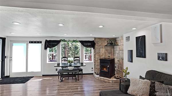This beautiful raised-ranch home sits on 2 full acres in the Pine Valley North subdivision, surrounded by plenty of trees and woodland scenery. A large front patio offers a great place to relax in the summer sun while taking time to view the local wildlife. The house has a welcoming presence, with an open and practical floorplan. Starting with a cozy yet spacious living/dining area that includes a pellet stove and tile surround for warmth on those wintry days, the home also has a well-designed kitchen, large pantry, utility room, plus clean lines and a soothing black and white wall palette throughout. Luxury vinyl flooring, plenty of space for living and entertainment, and a convenient half bath on the lower level. On the upper/main level, four bedrooms and a full bathroom offer plenty of sleeping/living space. Additional amenities include six panel wood doors, hall closet, vaulted ceilings, and lots of natural light. The property offers peace and quiet when you want it, and outdoor activities, such as biking, hiking and ATVing for the energetically-inclined. In the owners’ words, there is “space to grow and add”. Watching the colorful sunrises and sunsets is a favorite pass-time. The owners added that their children loved the schools and easy access to a lake and park “just a minute away”. “The neighbors are kind and quick to lend a hand”, and “the land (where) you can have many people over for get-togethers…a PERFECT FAMILY HOME!!” Hwy 285 is just a few miles away, with access to Denver and Fairplay, and of course, the town of Pine Grove. Check out the 3-D tour and pictures and call for your personal showing. You’ll be so glad you did!