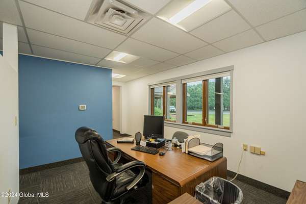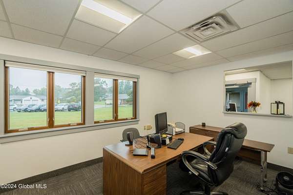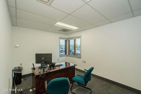 Spacious, well laid out professional office space in quiet complex. Currently fit up with 4 offices, reception area, large common area, 2 restrooms and kitchenette. Private entrance with waiting area and plenty of parking. Ideal for office, medical and spa services.