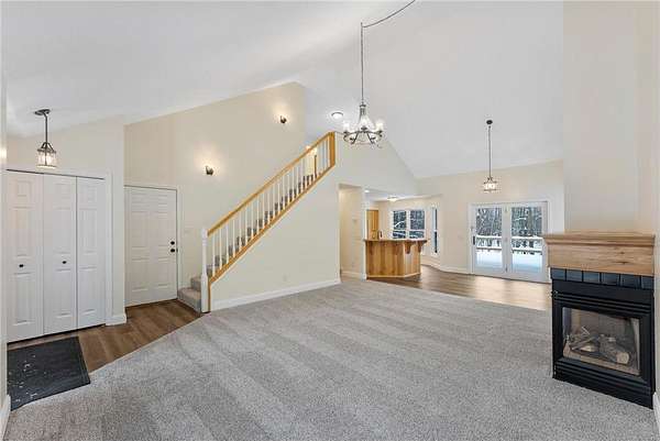 Est $2,435/moWonderfully updated home on 5 private acres! Updates include new septic, paint, floor coverings, lights, appliances and more! 2 primary suites with huge walk-in closets! Gas fireplace in open concept main level, attached garage and an additional large detached garage. A must see!