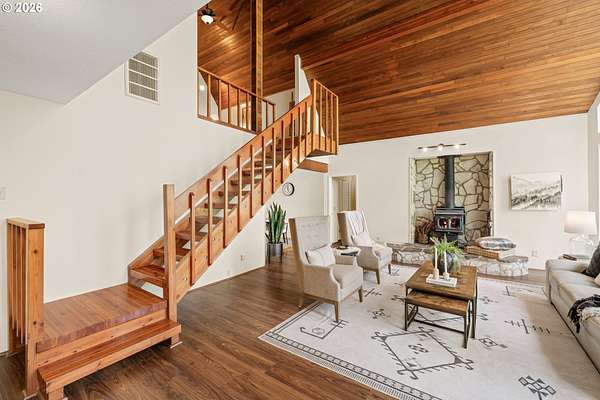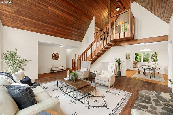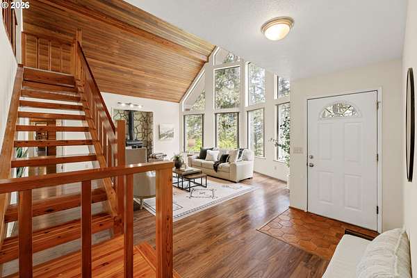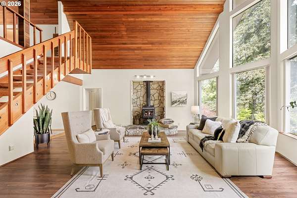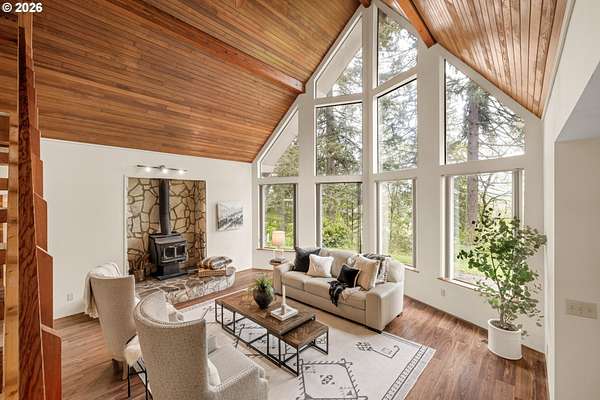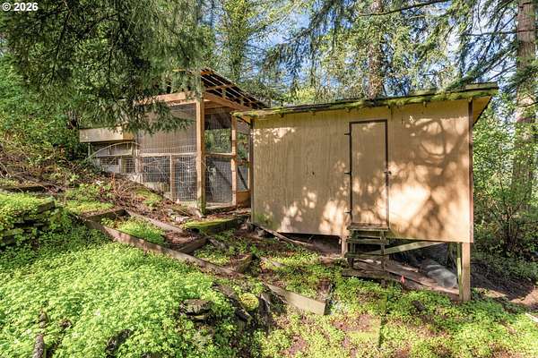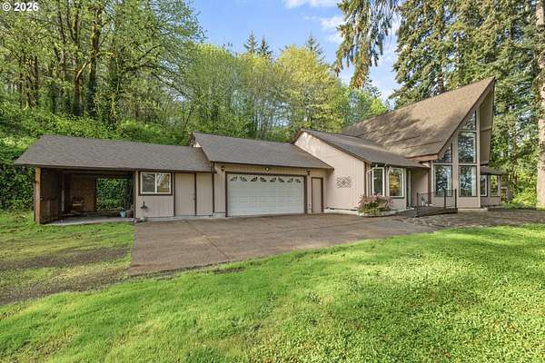 Offer Received - Offer Deadline for Sunday (4/19) at 10am. NO OPEN HOUSE HAPPENING.Tucked away on nearly 2 acres in Molalla, this private retreat offers the perfect mix of peace, seclusion, and convenience just a short drive to everyday amenities. Surrounded by nature, it's an ideal place to unwind and enjoy country living. Inside, you'll find soaring wood ceilings, exposed beams, and expansive windows that fill the home with natural light. A cozy sunroom overlooks the back deck and lush greenery, creating a relaxing year-round space. Major updates are already done, including a new roof (2018), propane tank (2019), well pump and piping (2020), heat pump (2021), furnace (2022), and a 22KW whole house generator (2022). Recent upgrades also include a new garage door opener, built-in oven/microwave (2023), plus brand new crawl space work and drainage (2026) for added peace of mind. The property offers incredible versatility with a workshop, garden shed with 220 power, chicken coop, woodshed, and abundant storage throughout. Enjoy your own outdoor oasis with a koi pond, terraced gardens, rock patio, and multiple decks including a private, tree-lined retreat. A rare blend of privacy, functionality, and charm perfect for those seeking space, hobbies, and a quieter lifestyle.