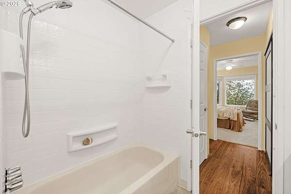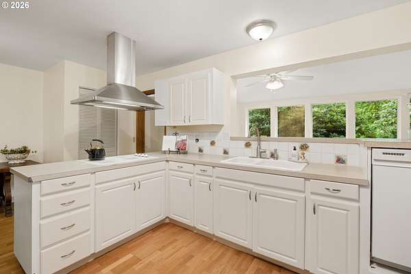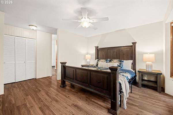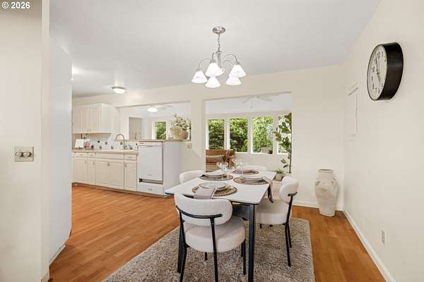 - Ceiling Fan, Garage Door Opener, Laminate Flooring, Laundry, Vaulted Ceiling, Vinyl Floor, Washer Dryer, Wood Floors