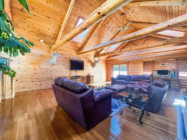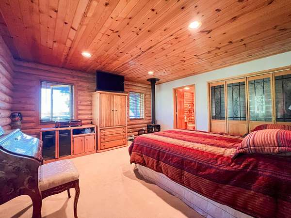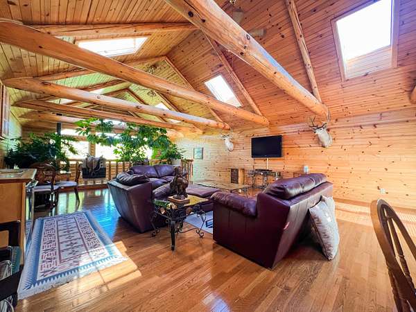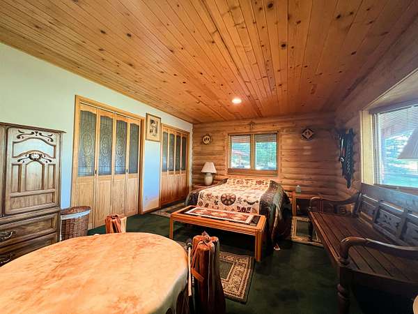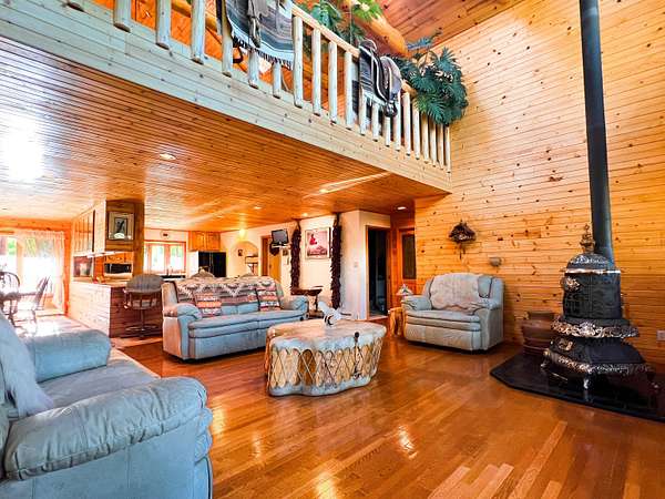 Come and visit this amazing Chama horse ranch with both river frontage & views galore! This 2,651 sq. ft. two story log cabin style home was built in 1990 and has a 2 car garage, carport, and wrap around deck just to name a few things. The backyard of the main residence has a pond, greenhouse, small private guest casita, storage sheds and is enclosed by a 6 ft chain link fence. The beautifully designed main residence features oak wood floors and cedar accent throughout. The nickel plated wood burning stove in the living room is a wonderful center piece to this home. wood burning stove in master bedroom, Each bathroom in the main house contains a Jacuzzi tub, with the master bathroom having a sauna/steam/rain mist room. The Kitchen features an Elmira electric kitchen stove perfect for any at home chef. This ranch has 25.22 Acre feet of water rights per annum and comes with private land tag for elk. Other features include a 30x46 ft steel storage building has a concrete sealed floor and electric power. 1 room casita with large deck overlooking the river is behind the primary residence. A luxury six-stall horse stable with electric, water, phone connection, secure tack room, walk in freezer, and built-in steel framed hoist plus a Fenced corral with 12 ft. by 24 ft. horse port. The guest house is 1053 soft with 2bed and 1 bath. The full property is bordered by Jicarilla Apache land on 3 sides.