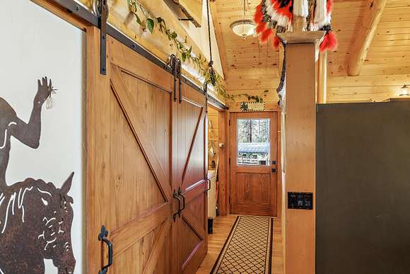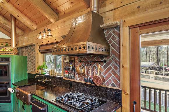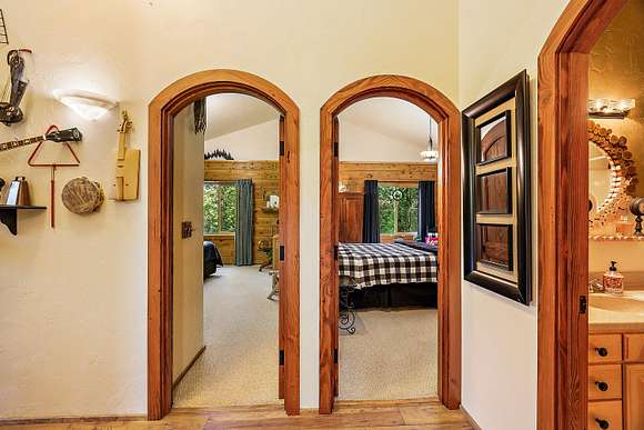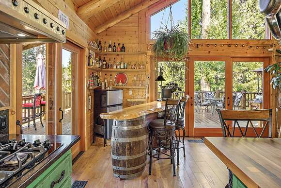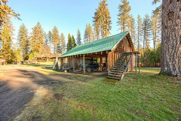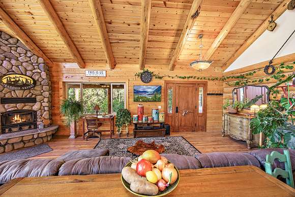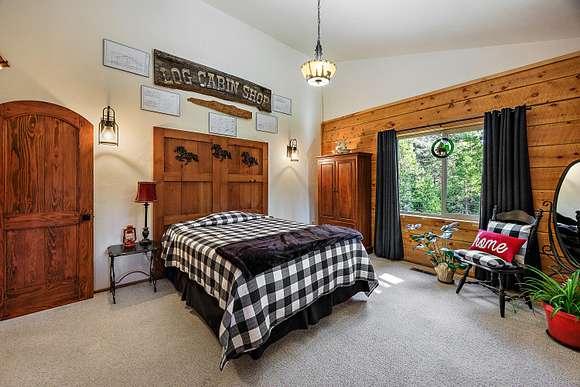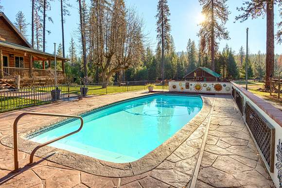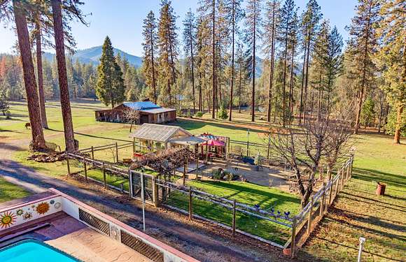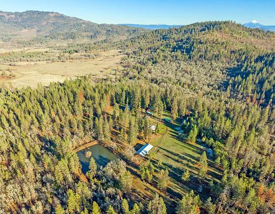 Embrace the Oregon lifestyle on this breathtaking 19-acre estate where luxury meets the natural beauty of the Pacific Northwest. Surrounded by towering Ponderosa pines and panoramic mountain views, this custom log home offers a peaceful, self-sufficient retreat.The light-filled great room is anchored by a striking Tahoe stone fireplace, while the gourmet kitchen boasts custom cabinetry and a handcrafted butcher block island made from walnut, maple, and cherry. Triple sliding doors open to expansive outdoor living--wrap-around decking, a saltwater pool, and a 600 sq ft gable-end deck with built-in BBQ and hot tub.This property has it all: a 2,000 sq ft shop, boutique garden, private bass pond, fenced pastures, and a 3-stall barn--perfect for hobby farming, equestrian living, or simply enjoying wide-open space.Located just minutes from I-5, the airport, and the charming communities of Jacksonville and Ashland, it offers the perfect blend of rural tranquility and modern convenience.
