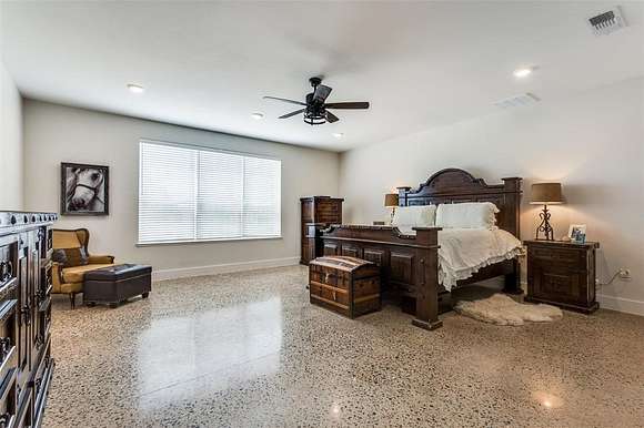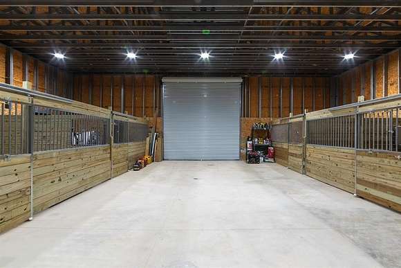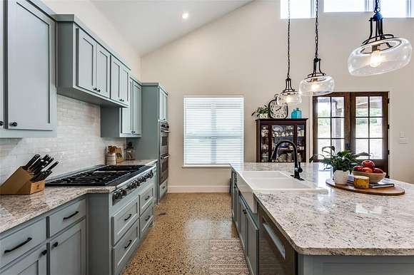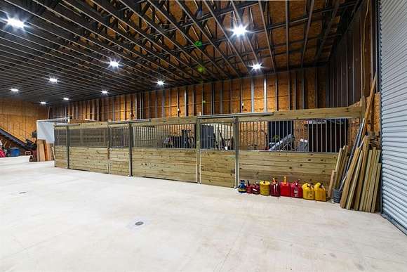 HOLD YOUR HORSES!! This incredible barndo on approximately 25 acres is a real showstopper! Finished in May of this 2024, it boasts an open kitchen and living area, perfect for entertaining. The kitchen is a chef's paradise with a commercial stove, double oven, and a massive island. The walk-in pantry has custom built cabinets for storing those small appliances, along with more storage. The floors are made of polished pebble stone concrete, and no need for a night light when the owner has added a fun touch by making the pebbles glow in the dark in each bathroom. With custom-built cabinets in the primary bedroom for tons of closet space, a dual shower, and a urinal in the primary bathroom, this barndo has thought of everything. The guest bedroom offers a HUGE walk-in closet for more storage. The large laundry room has a sink & plenty of custom built-in cabinets for even more storage & entry into the large 2-car garage. From the garage, step down into your horseman's dream with 6 stalls, wash rack, tack room & half bath. Large upstairs loft with even more storage. Open the barn doors as the sun sets and watch one of the most beautiful scenic views in Collin County. At the back of the property, there is a concrete barn and a large awning for holding feed, hay or turn it into outdoor stalls.
