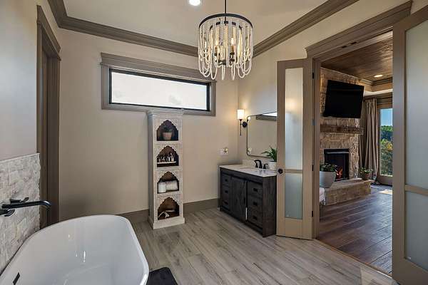 Step inside to find a spacious open-concept layout featuring soaring ceilings, reclaimed wood accents, and an abundance of natural light. The gourmet kitchen is equipped with custom cabinetry, stainless steel appliances, and a large island ideal for gathering. The inviting living area centers around a warm, welcoming fireplace that perfectly frames the sweeping views just beyond the windows.