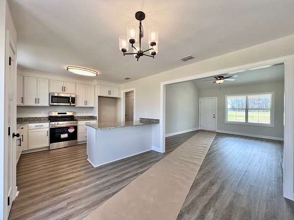 Est $1,553/moNew Construction home on a little over a half-acre size lot! Covered Front Porch! 3 bdrm/2 baths! Laminate Floors throughout home w/carpet in the bedrooms! Black fixtures & lighting! Granite counter tops in kitchen & baths! Kitchen pantry! Stainless steel appliances (stove/microwave/dishwasher)! Double closets in main bath! Concrete patio! 22x20 2-car garage! 1-Year Builder's Warranty! Located in between Woodbury & McMinnville! 38 min. to Center Hill Lake! Located in an RD eligible area!
