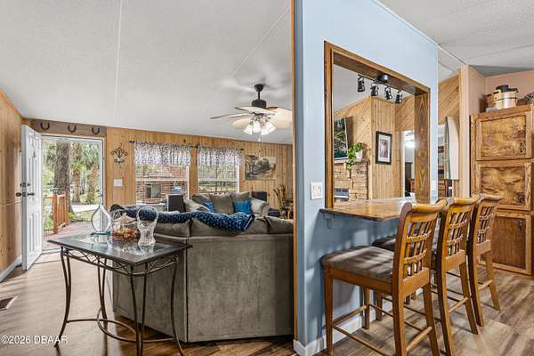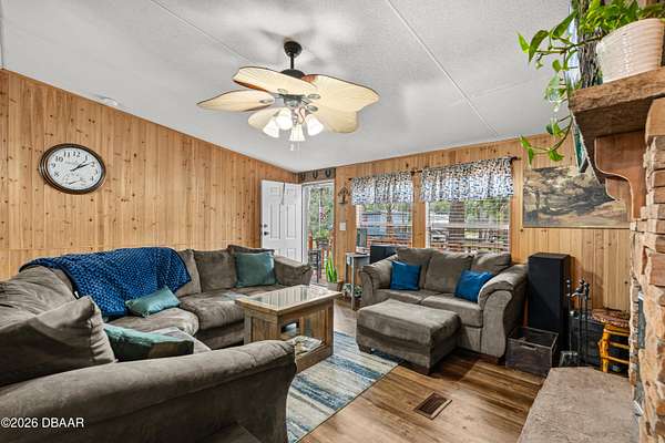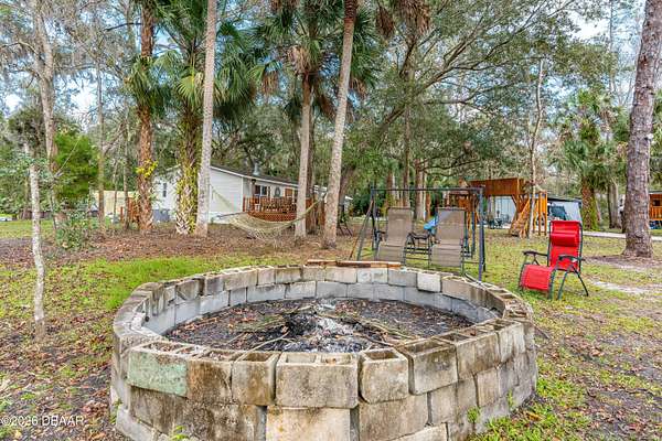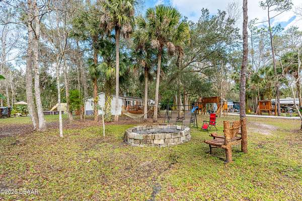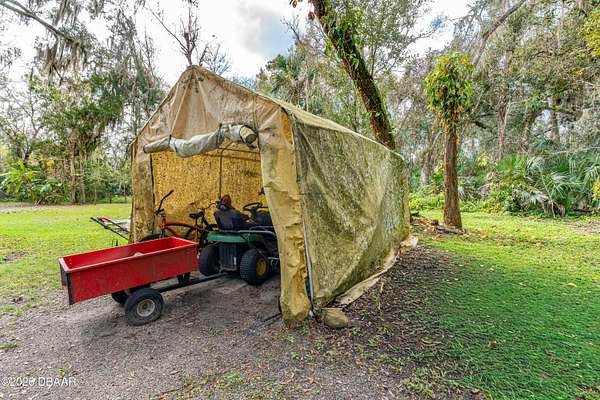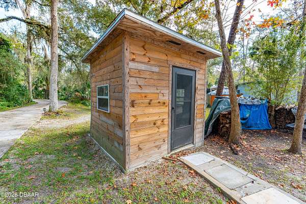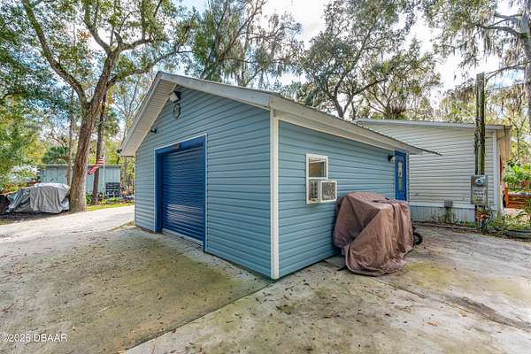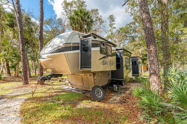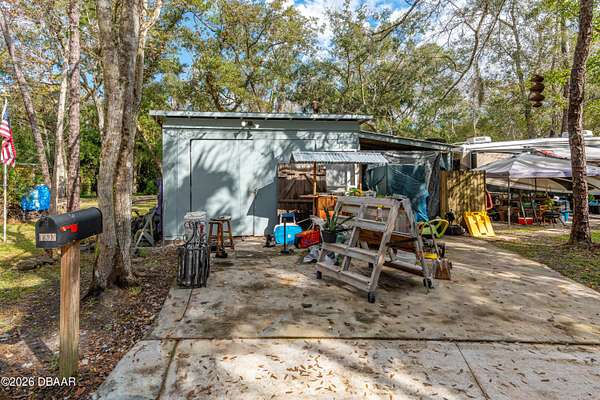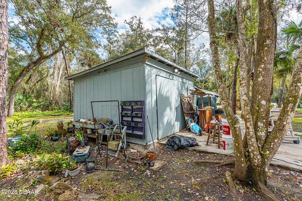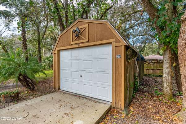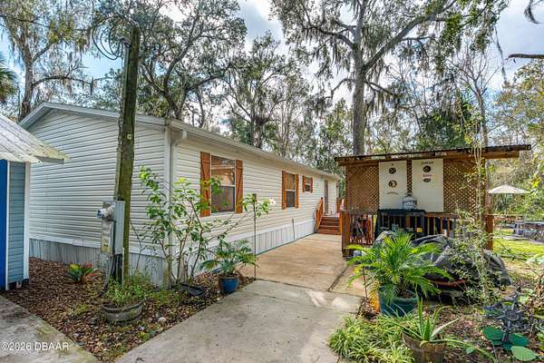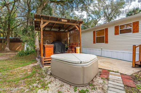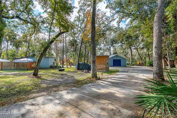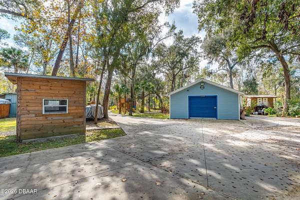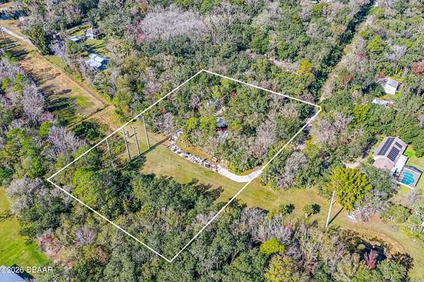 Ready to bring the animals and start your homestead dream? Enjoy 2.5 acres of freedom and privacy in beautiful Edgewater! This charming 3-bedroom, 2-bath country retreat offers the perfect blend of rustic character, modern upgrades, and wide-open space. This property is ideal for anyone craving privacy, land, and a lifestyle that feels a little more ''back-to-nature.'' Need space for tools, toys, or projects? You've got it! Enjoy tons of storage with a 20x20 detached 2-car garage with concrete floor, an 11x30 shed, RV Hookup, and a 17x17 pole barn perfect for equipment, workshops, tack storage, or extra space for hobbies. Inside, you'll love the warm farmhouse feel with detailed hand-carved knotty pine beadboard walls and updated wood plank flooring throughout. The beautifully upgraded kitchen is the heart of the home and truly a showstopper complete with hand-carved solid wood cabinets, built-in pantry, granite countertops, hammered copper sink, island with cooktop, plus a built-in wall oven and microwave perfect for effortless cooking and entertaining. Step outside and soak in your private slice of paradise from the oversized 26x18 porch, surrounded by lush natural views and endless possibilities. Whether you're dreaming of chickens, goats, horses, a garden, or simply room for the dogs to run this property delivers. This home is built for relaxing and making memories with an above-ground pool, firepit area, custom wooden playset, and an adorable backyard treehouse retreat that feels straight out of a country storybook. You'll love the estate-style wrought iron gated entrances and large circular concrete driveway that loops around the property giving you separate entrances for convenience. Want to cozy up by the fireplace after a long day, there's a huge stack of firewood already cut and ready on-site. Escape to the upgraded primary suite to indulge and soak the day away in the remodeled bathroom, where a luxurious oversized soaking tub invites pure relaxation. A/C was replaced in June of 2021 making it less than 5 years old and all new drainfield for septic completed in Dec. of 2024. Quiet country living with easy access to town and located close to the Intracoastal, New Smyrna Beach, and Mosquito Lagoon for boating and fishing adventures. If you've been searching for land, privacy, and a true mini-homestead lifestyle this is it. Schedule your private tour today and come experience 2.5 acres of endless possibilities.