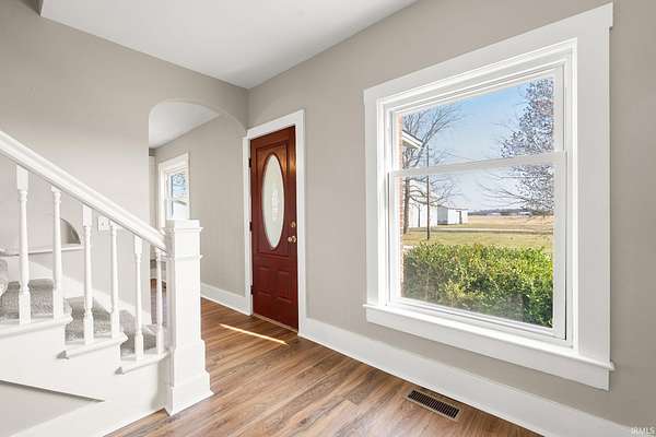 This inviting country retreat sits on three peaceful acres just south of Salamonie Reservoir and is surrounded by open fields for a quiet rural setting. The home was recently updated with fresh paint, new flooring, and a brand new furnace and air conditioner. Inside you will find beautiful big rooms with high ceilings on the main level, including a spacious eat in kitchen that offers plenty of room to cook and gather, along with a separate formal dining room for larger meals. The home features four generous bedrooms, two full baths, and convenient main level laundry. The roof is only five years old. Outside you will find a detached two car garage along with multiple outbuildings that are perfect for livestock or storage. Some of the acreage extends into the field to complete the full three acres, giving you the space and setting that make country living truly enjoyable.
