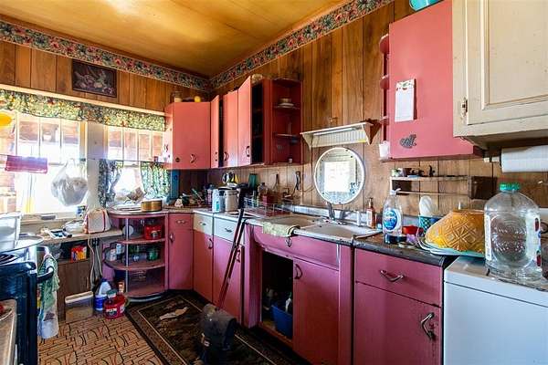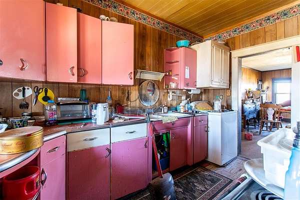 16560 E. Maguire Rd, Noble ~ Step into the charm of a 1920 farmhouse on 20 acres (mol) at the top of a scenic hill with wide-open northern views. Fish in the pond. Hike. Hunt. 3 bed, 1 bath home was lived in and loved by the same owner for 50+ years and still carries its original character. Six-inch baseboards. Vintage window casings. Classic clawfoot tub. Natural light spilling into every room from walls of windows. Hardwoods are believed to be under the carpet, giving the next owner a chance to reveal beautiful history. Home was moved here decades ago. Original farmhouse was toward the front of the property where the concrete block porch still stands. The kitchen features highly sought-after mid-century "Youngstown Kitchen Diana" steel cabinetry which is an iconic collectible. These vintage kitchens, manufactured by Mullins Manufacturing Corporation, attract collectors and those looking to restore mid-century modern homes or who appreciate true retro design. Good sized bedrooms feature incredible natural light and views of the countryside. Outside, the land offers space to create, grow, or simply enjoy country living. Several sheds, storage containers, and old metal barn sit on the property. Two wells with one by the house and one near the top of the hill which is in unknown condition and is as-is where-is. Electric poles are located near the front of the property, at the house with three additional poles taking power to the back of the property where two other trailers once stood. A tiny house east of the main home has a full bathroom, kitchen sink and cabinets and could be restored. Utilities also run underground to the northwest corner where another tiny home once stood. The main home feels solid. Enclosed porch needs TLC, and septic requires work. The seller has removed most personal items; everything remaining stays. Approx. 10 mi to Lake Thunderbird, 35 mi to Tinker AFB, 20 mi to OU Norman, and 30 mi to OBU Shawnee. Oh, the possibilities! Schedule today.