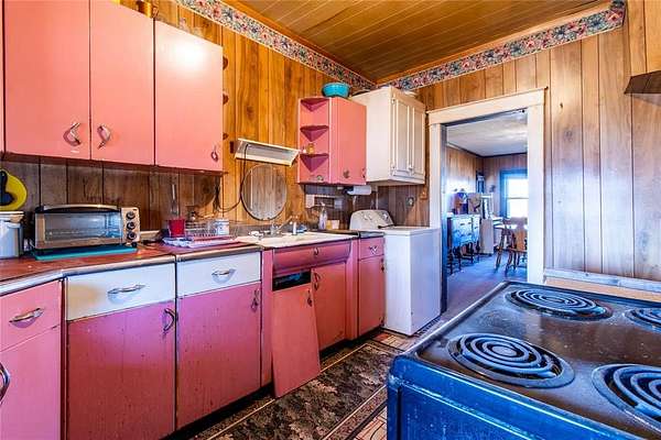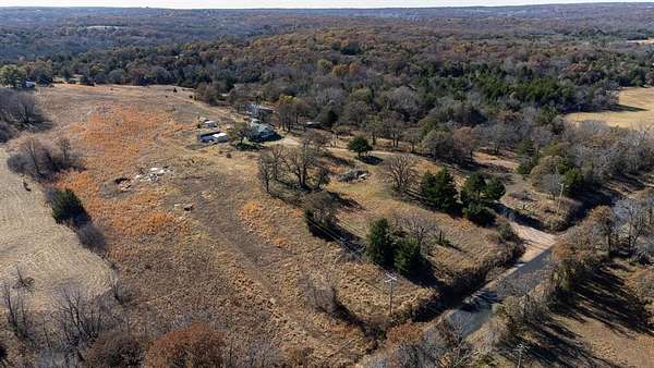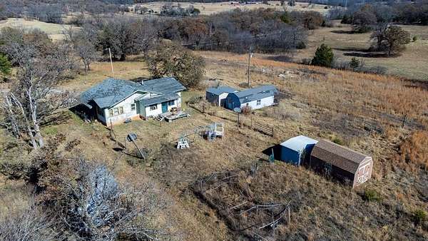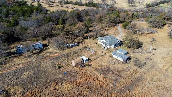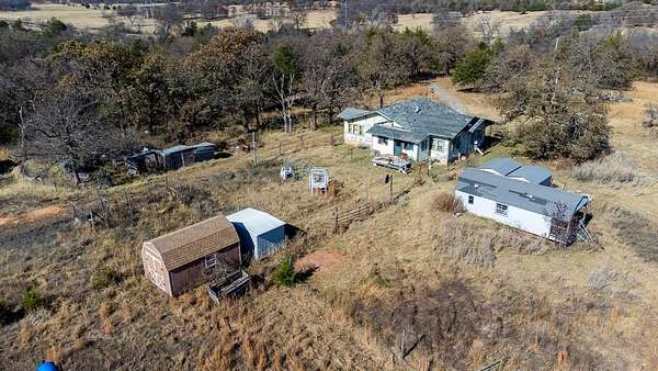 16560 E. Maguire Rd, Noble ~ Step into the charm of a 1920 farmhouse on 20 acres (mol) at the top of a scenic hill with wide-open northern views. Fish in the pond. Hike. Hunt. 3 bed, 1 bath home was lived in and loved by the same owner for 50+ years and still carries its original character. Six-inch baseboards. Vintage window casings. Classic clawfoot tub. Natural light spilling into every room from walls of windows. Hardwoods are believed to be under the carpet, giving the next owner a chance to reveal beautiful history. Home was moved here decades ago. Original farmhouse was at the front of the property where the concrete block porch still stands. The kitchen features highly sought-after mid-century "Youngstown Kitchen Diana" steel cabinetry which is an iconic collectible. These vintage kitchens, manufactured by Mullins Manufacturing Corporation, attract collectors and those looking to restore mid-century modern homes or who appreciate true retro design. Good sized bedrooms feature incredible natural light and views of the countryside. Outside, the land offers space to create, grow, or simply enjoy country living. Several sheds, storage containers, and old metal barn sit on the property. Two wells with one by the house and one near the top of the hill which is in unknown condition and is as-is where-is. Electric poles are located near the front of the property, at the house with three additional poles taking power to the back of the property where two other trailers once stood. A tiny house east of the main home has a full bathroom, kitchen sink and cabinets and could be restored. Utilities also run underground to the northwest corner where another tiny home once stood. Home feels solid. Enclosed porch needs TLC, and septic requires work. Approx. 10 mi to Lake Thunderbird, 35 mi to Tinker AFB, 20 mi to OU Norman, and 30 mi to OBU Shawnee. Oh, the possibilities! Schedule today.