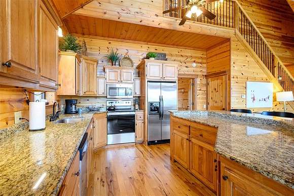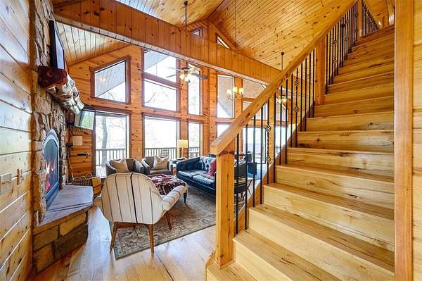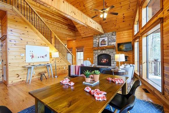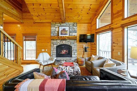 An open-concept living space, complete with high-end finishes and panoramic windows, seamlessly connects to an expansive wraparound deck, inviting you to savor your morning coffee as the mist rises over the water. As evening falls, gather around the outdoor fire pit under a canopy of stars, or slip into the steaming hot tub as the sounds of the river soothe your senses.