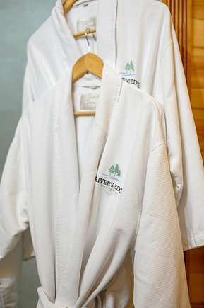 Step inside to discover sophisticated rustic elegance, where every detail has been thoughtfully curated for comfort and indulgence. The two beautifully appointed bedrooms provide a serene retreat, with the primary suite boasting a sumptuous bedside jacuzzi--the perfect place to unwind as you take in the mesmerizing river views.