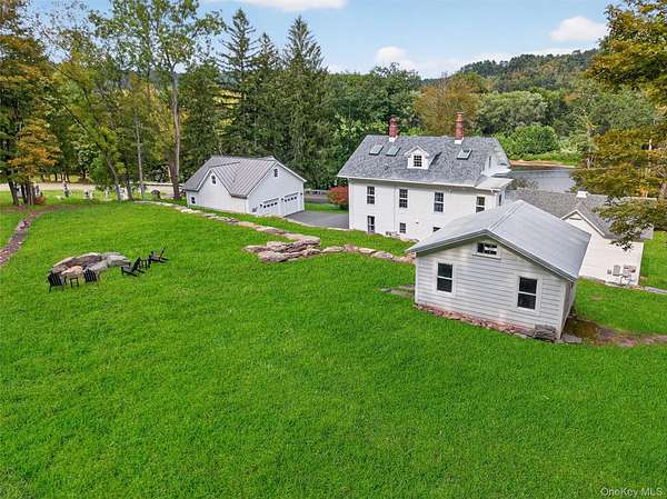 The Otto Appley House - 1657 River Road Step back in time while living fully in the present at this rare grand dame of the Delaware River, the Otto Appley House. Built in 1900 for the Appley family of physicians, this 5BR/2BA, 3,669 sq ft Colonial Revival residence is individually listed on the National Register of Historic Places. Steeped in history yet thoughtfully modernized, the home embodies the perfect blend of preservation and contemporary comfort. The home's wrap-around porch floats above your own private 500 feet of Delaware River frontage, offering front-row seats to one of the area's most iconic landscapes. Inside, period character meets invisible modernization: gleaming hardwood floors, Andersen divided-light windows, original storm windows, and high-efficiency upgrades like a Navien propane combi-boiler, LG ArtCool ductless mini-splits, and blown-in dense-pack cellulose insulation. Warmth and ambiance flow from two Kozy-Heat gas fireplaces, ensuring three sources of efficient winter comfort. The second floor offers four bedrooms-each with its own sink-plus a smartly configured bath with recirculating hot water. The third floor, reimagined from attic to living space in 2021, now hosts two sound-insulated office suites with in-floor power, ethernet, Velux skylights, and closed-cell spray foam insulation. Beyond the main house, the property boasts a new 2,000 sq ft climate-controlled garage with 13-foot ceilings, dual EV chargers, and expansive upstairs storage. Outbuildings include a rehabbed well house, a summer kitchen with panoramic eagle's-nest views (plus architectural plans for further expansion), and terraced grounds with an oversized 8-foot fire pit overlooking the river. Whether launching kayaks from your private access, fishing steps from your porch, or floating downriver to Narrowsburg, this property delivers the quintessential Upper Delaware lifestyle. All major systems-from new driveway and drainage to a whole-house Generac generator-have been updated for peace of mind. A rare offering of history, luxury, and riverfront living-just two hours from NYC.